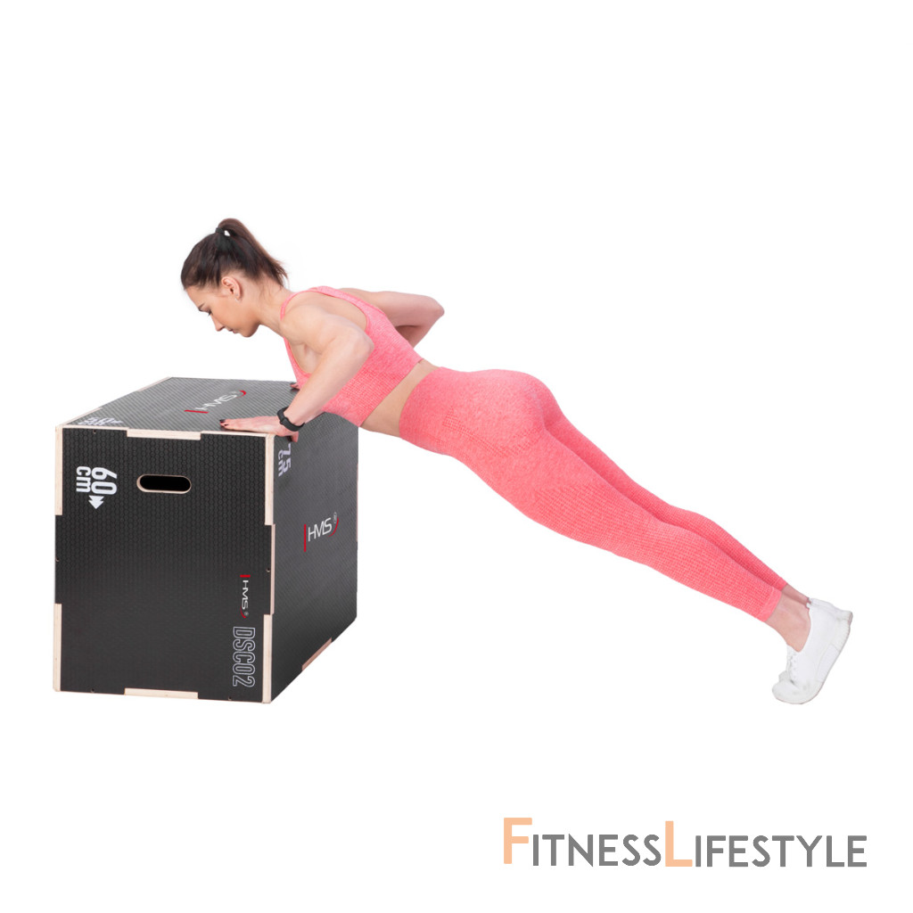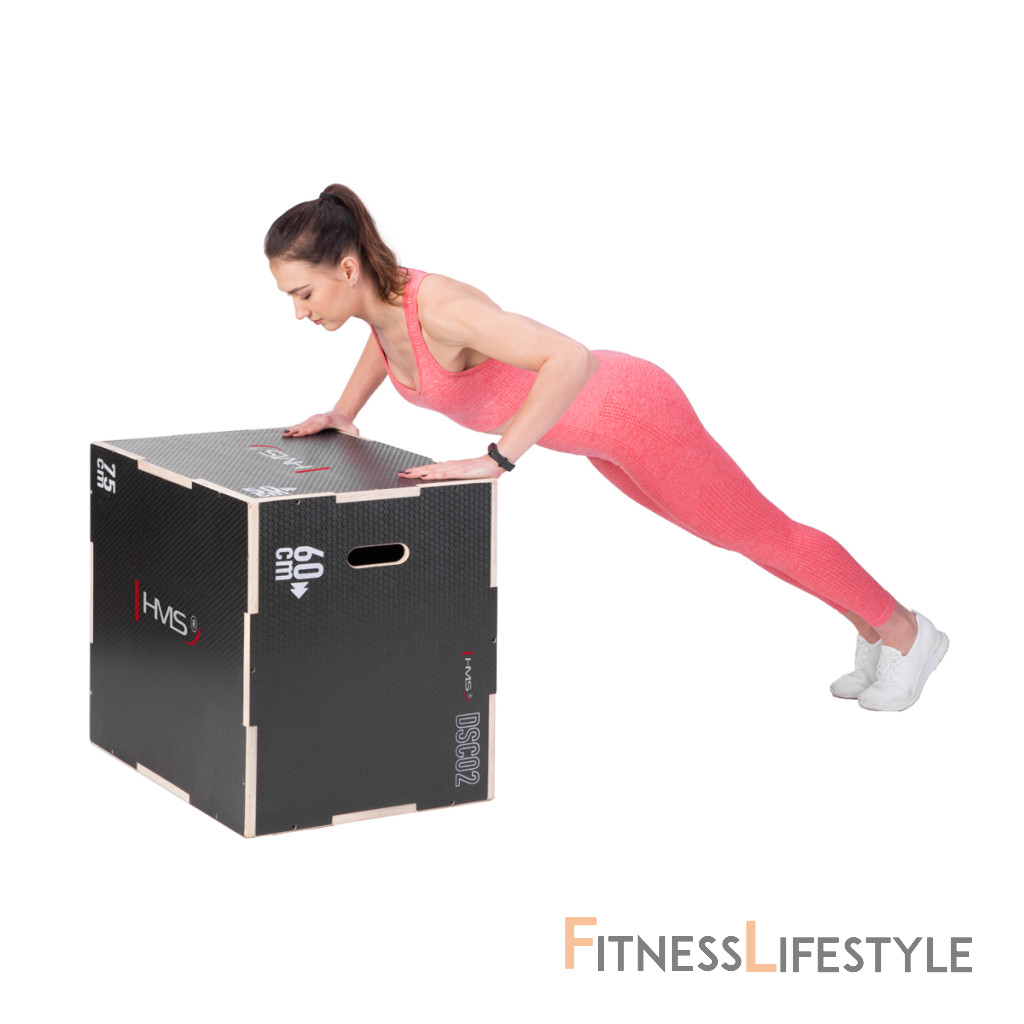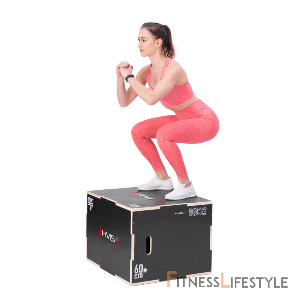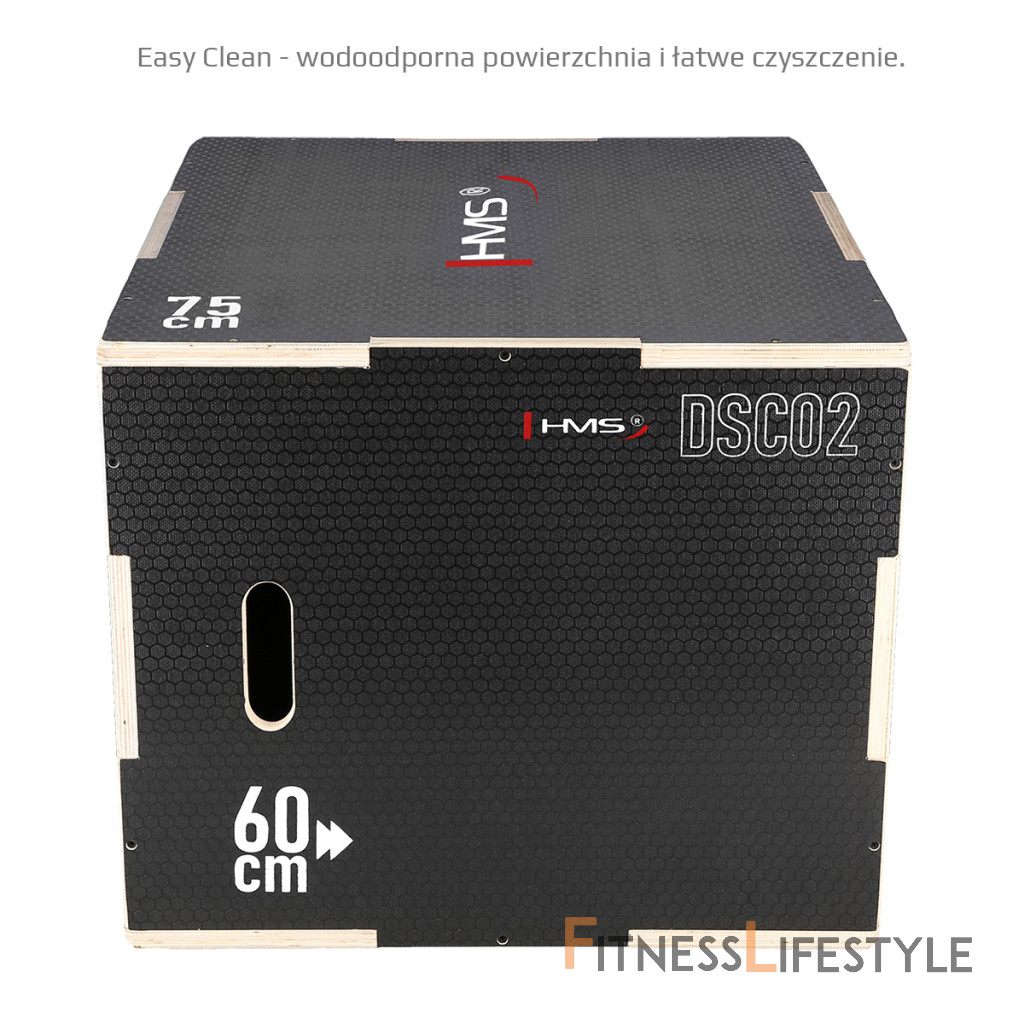 Plyometrické box HMS DSC02 je debna určená pre kondičný tréning. Box je neoddeliteľnou súčasťou každého fitnesscentra, pomôckou profesionálnych športovcov alebo aj atlétov. Vyrobený je z 18 mm preglejky a má klasické rozmery 75 x 60 x 50 cm (30 x 24 x 20 palcov) ..