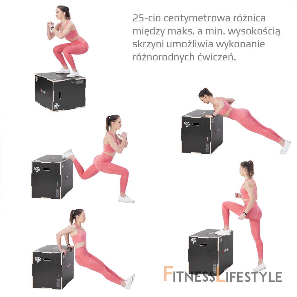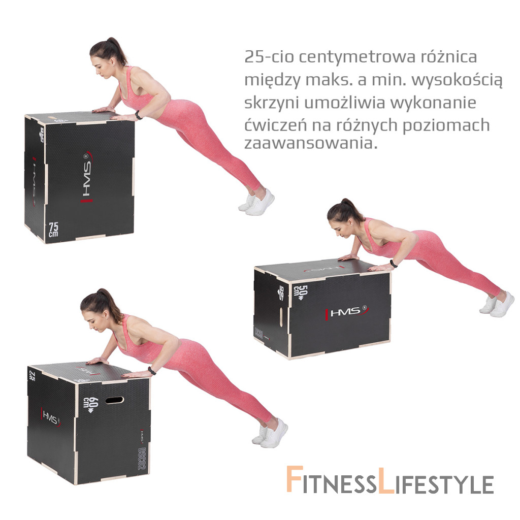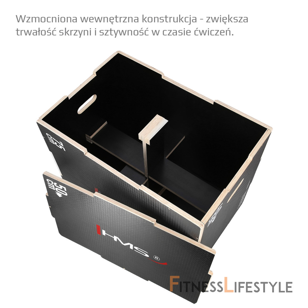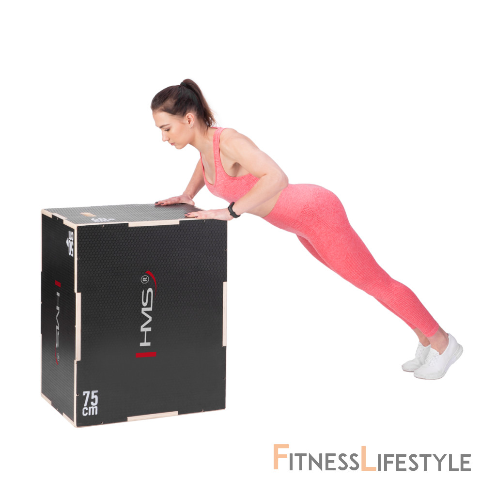 Plyometrické box HMS DSC02 je debna určená pre kondičný tréning. Box je neoddeliteľnou súčasťou každého fitnesscentra, pomôckou profesionálnych športovcov alebo aj atlétov. Vyrobený je z 18 mm preglejky a má klasické rozmery 75 x 60 x 50 cm (30 x 24 x 20 palcov) ..