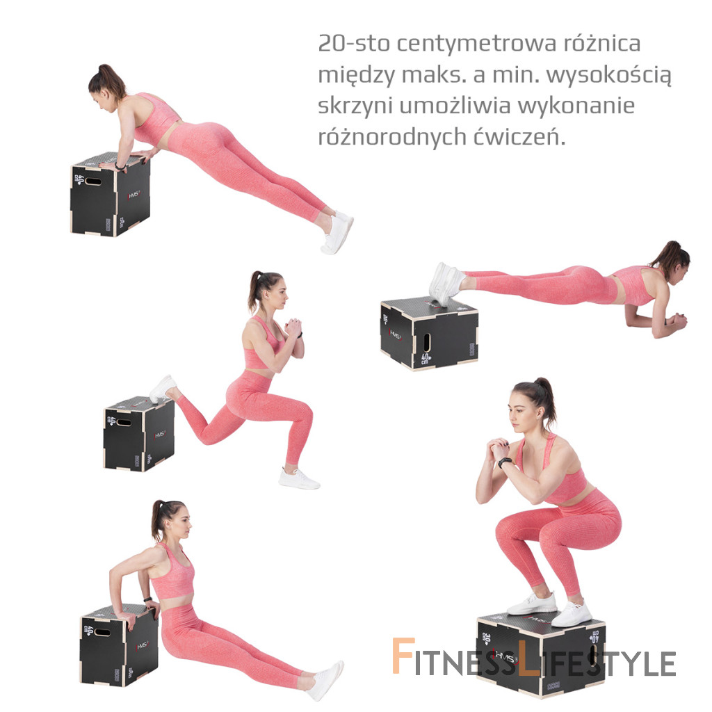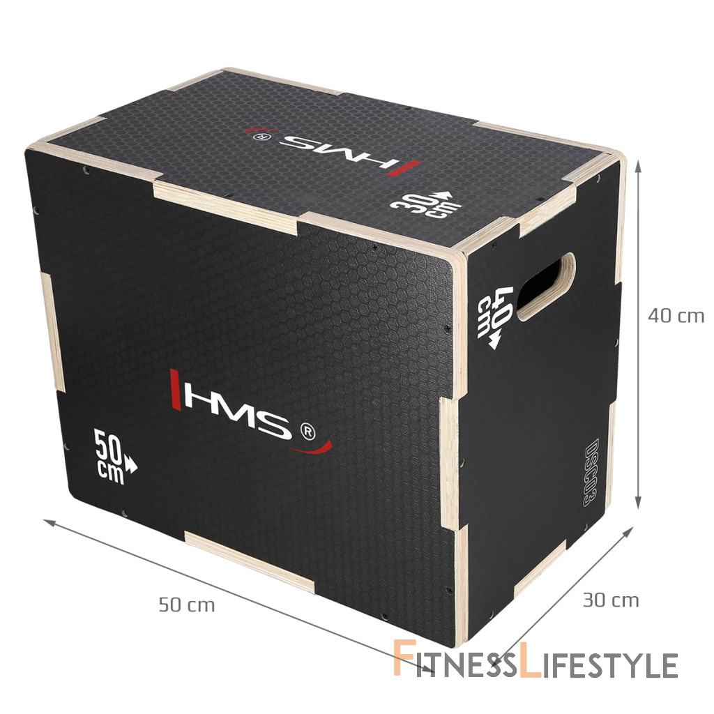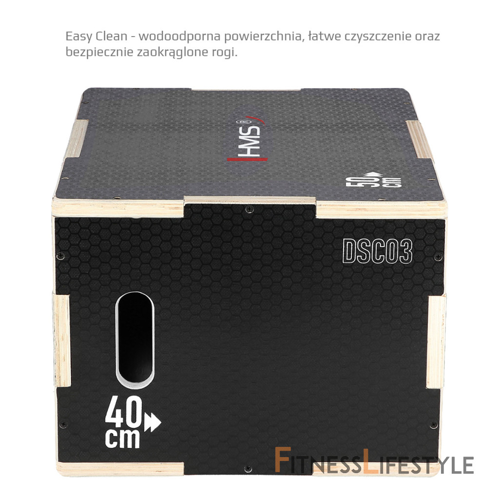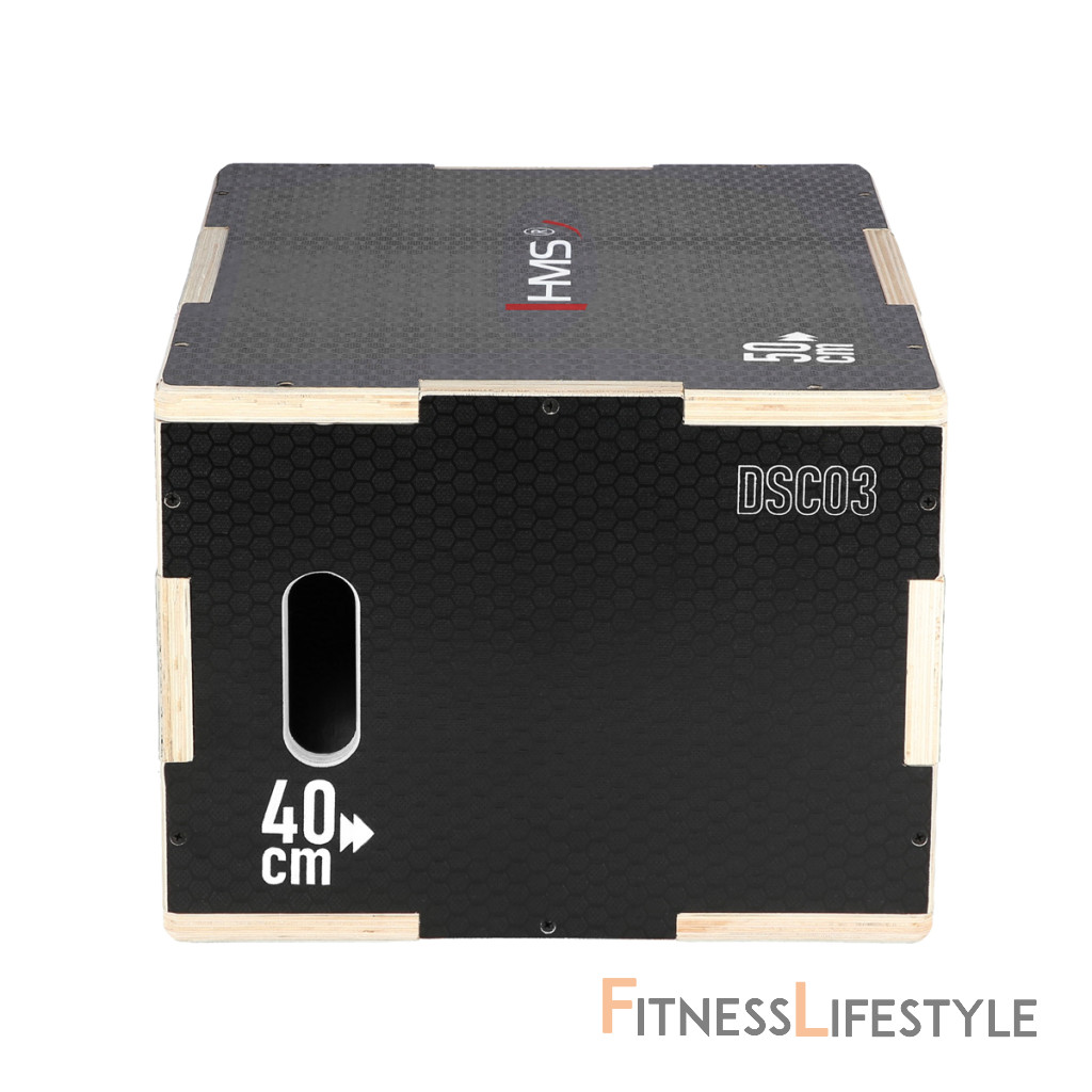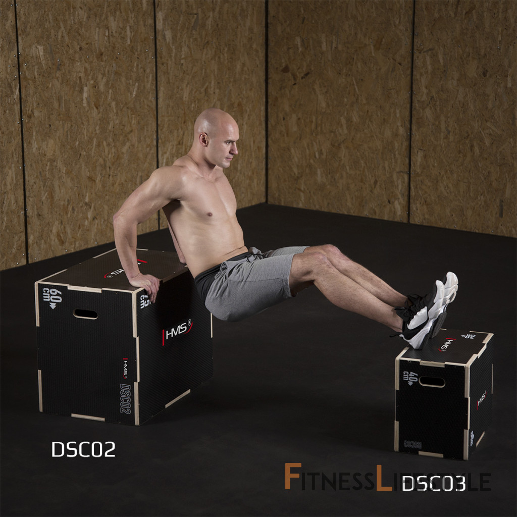 Plyometrické box HMS DSC03 je debna určená pre kondičný tréning. Box je neoddeliteľnou súčasťou každého fitnesscentra, pomôckou profesionálnych športovcov alebo aj atlétov. Vyrobený je z 18 mm preglejky a má rozmery 50 x 40 x 30 cm.