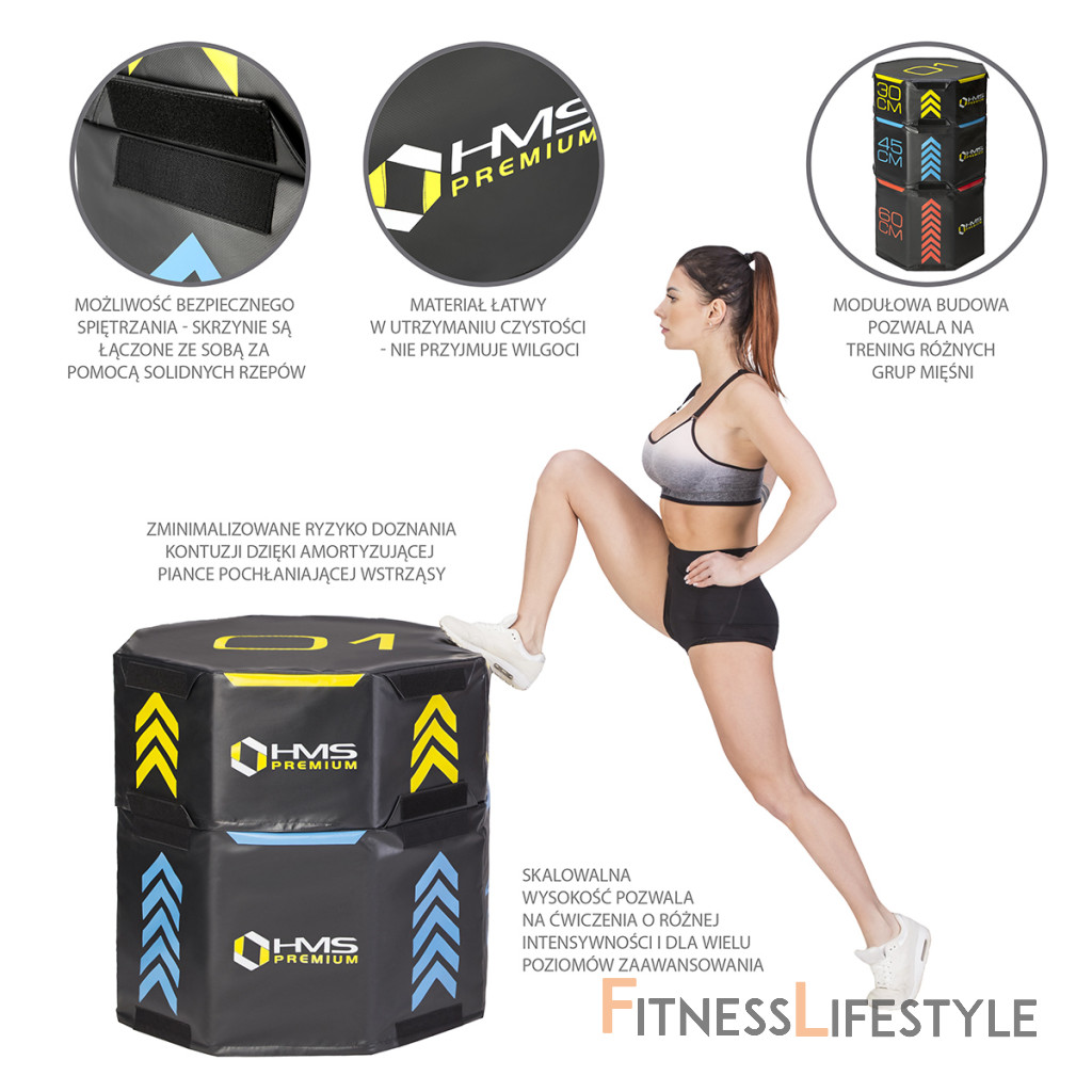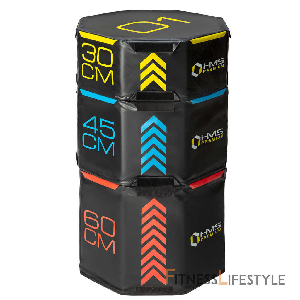 HMS Premium PYOBS01 je sada troch mäkkých, šesťhranných plyometrických skríň o rôznej výške.