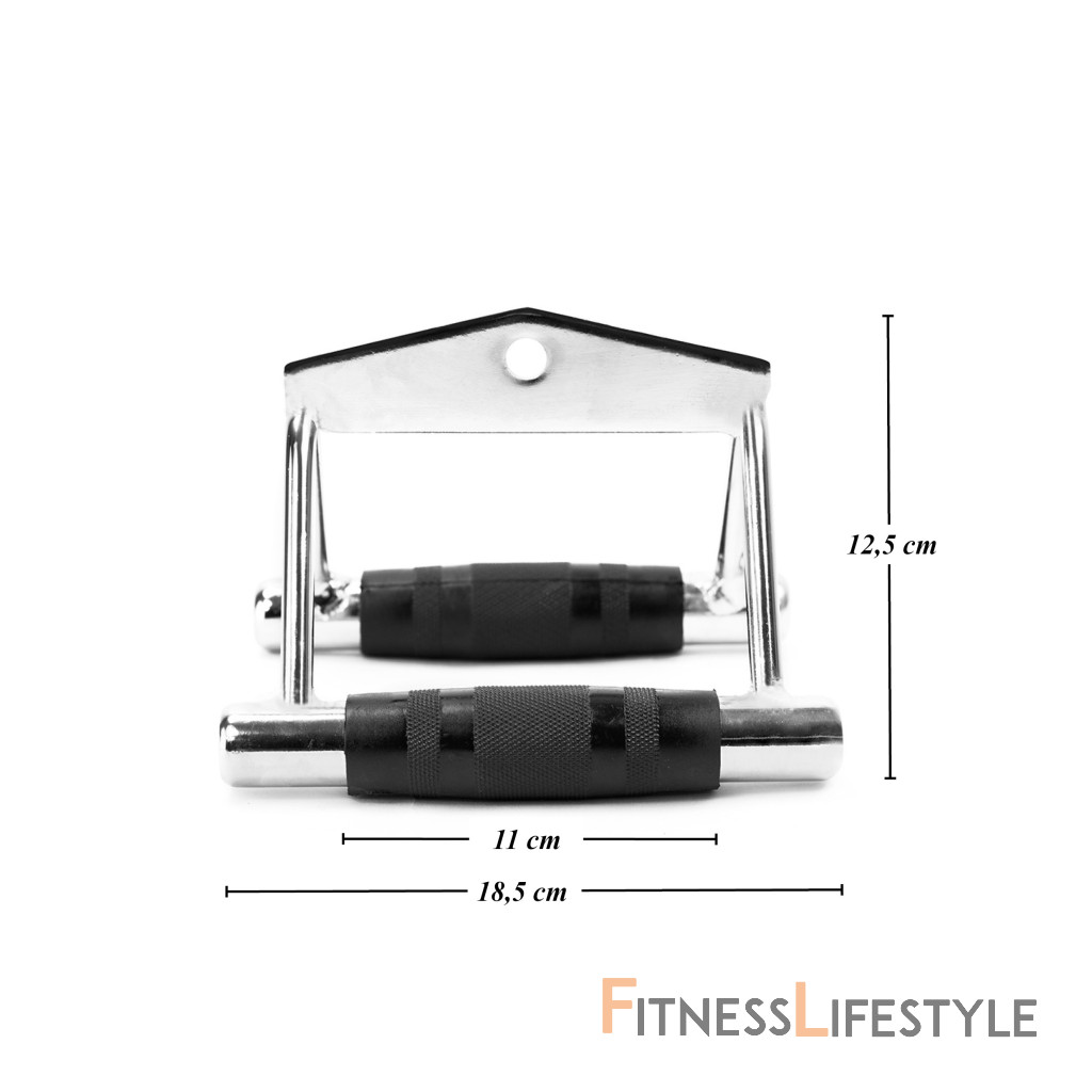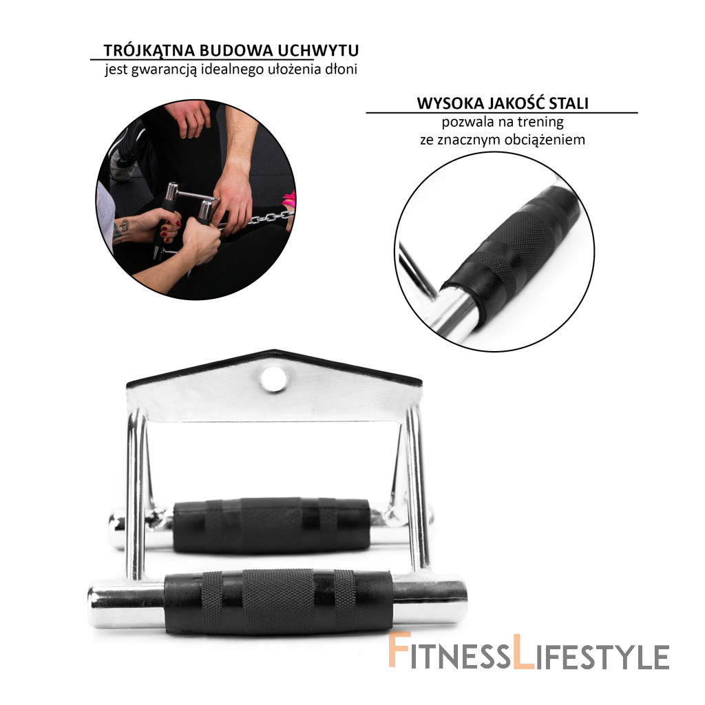 Obručné madlo s gumou HMS UW04 vhodné k cvikom na chrbát, presnejšie príťahom spodnej kladky, alebo k príťahom osi v multiosom kĺbe - Landmine, kedy do neho činka dokonale zapadne. Trojuholníková konštrukcia úchopu zaručuje dokonalú polohu ruky a zároveň núti k správnemu pohybu pri cvičení. Pogumovaná rukoväť zaisťuje bezpečné držanie a zabraňuje vykĺznutiu adaptéra z ruky a zároveň vyžaduje pevnejší úchop. Týmto spôsobom tiež pracujeme na rozvoji svalov predlaktia. Nie príliš široký rozstup rukoväte, uľahčuje udržanie správnej dráhy pohybu, tj vedenie lakťov v blízkosti trupu. Adaptér UW04 je vyrobený z kvalitnej chrómovanej ocele, ktorá umožňuje tréning so značnou záťažou. Adaptér UW04 pomôže ľahko a efektívne rozvíjať chrbtové svaly. Parametre: Upozornenie: