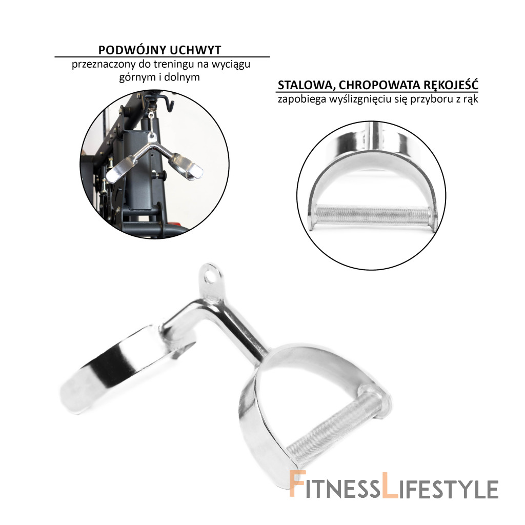 Veslársky adaptér UW08 úzkeho typu. Ideálna pomôcka k priťahuje k pásu a precvičenie chrbtových svalov. Parametre: Výška: 185 mm Šírka: 360 mm... Čítať viac