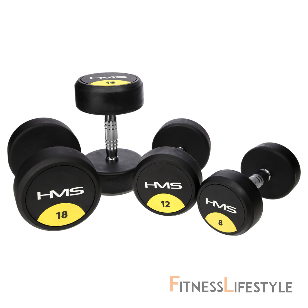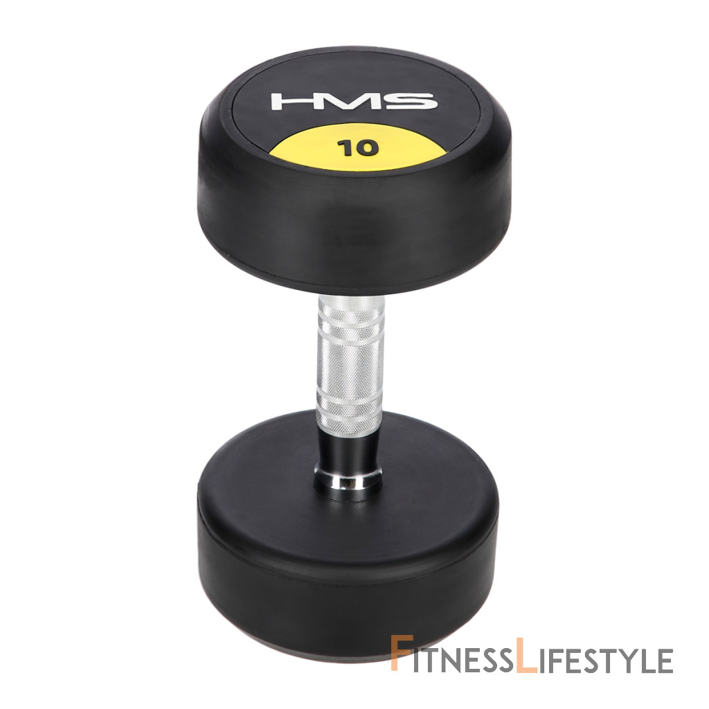 10-tich kilogramová jednoručná činka HMS HG Pro je určená pre profesionálne použitie ako doma tak v posilňovni. Závažie tvorí liatinový odliatok pokrytý hrubou vrstvou gumy, ktorá ochráni ako činku, tak podklad pred poškodením. Na čelnej strane je značka HMS a údaj o hmotnosti v kilogramoch. Rukoväť je vyrobená z chrómovanej ocele, pre pohodlný úchop má súdkovitý tvar s vrúbkovaným povrchom.