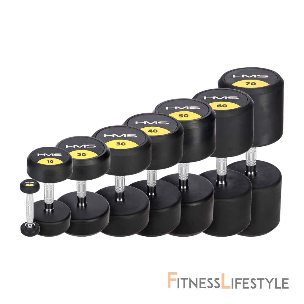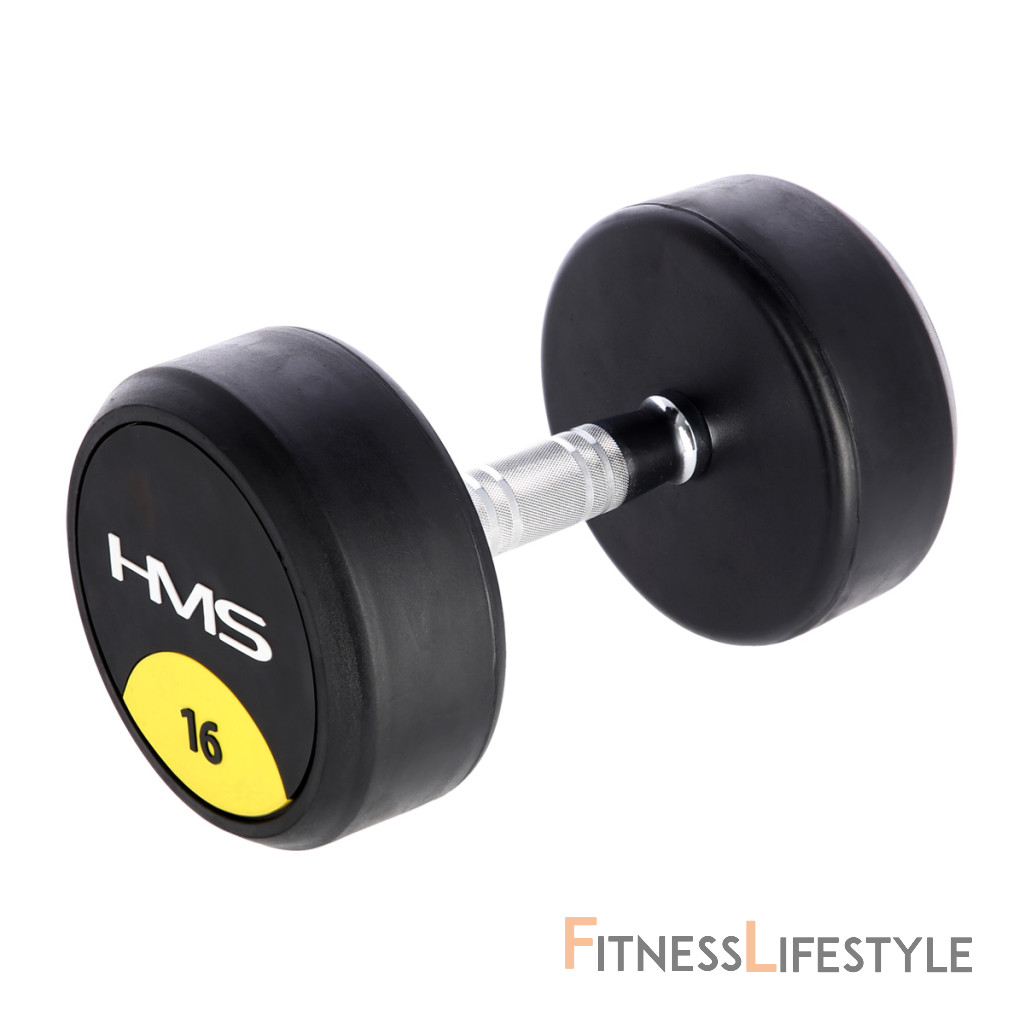 16-tich kilogramová jednoručná činka HMS HG Pro je určená pre profesionálne použitie ako doma tak v posilňovni. Závažie tvorí liatinový odliatok pokrytý hrubou vrstvou gumy, ktorá ochráni ako činku, tak podklad pred poškodením. Na čelnej strane je značka HMS a údaj o hmotnosti v kilogramoch. Rukoväť je vyrobená z chrómovanej ocele, pre pohodlný úchop má súdkovitý tvar s vrúbkovaným povrchom.