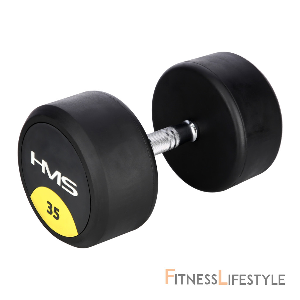 35-tich kilogramová jednoručná činka HMS HG Pro je určená pre profesionálne použitie ako doma tak v posilňovni. Závažie tvorí liatinový odliatok pokrytý hrubou vrstvou gumy, ktorá ochráni ako činku, tak podklad pred poškodením. Na čelnej strane je značka HMS a údaj o hmotnosti v kilogramoch. Rukoväť je vyrobená z chrómovanej ocele, pre pohodlný úchop má súdkovitý tvar s vrúbkovaným povrchom.