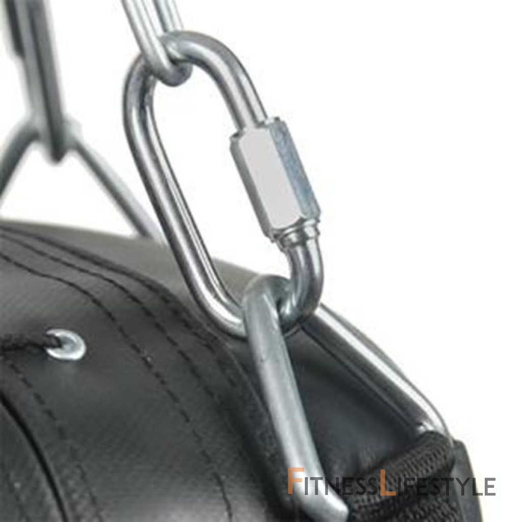 Profesionálne boxovacie vrece na tréning MMA DBX BUSHIDO 130 x 42 cm. Dĺžka reťaze pri zavesení 40 cm (vďaka karabíne možno nastaviť aj kratšiu dĺžku). V Početne zostavy je návlek na hornú časť vreca.