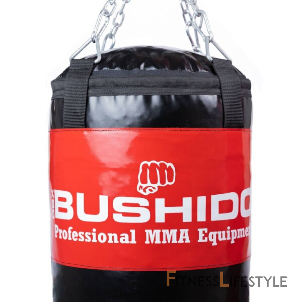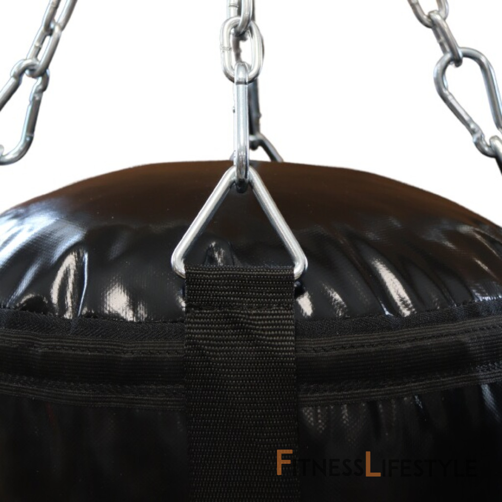Profesionálne boxovacie vrece DBX BUSHIDO 130 x 30 kg. Dĺžka reťazí pri zavesení 45 cm (vďaka karabíne je možné nastaviť aj kratšiu dĺžku).