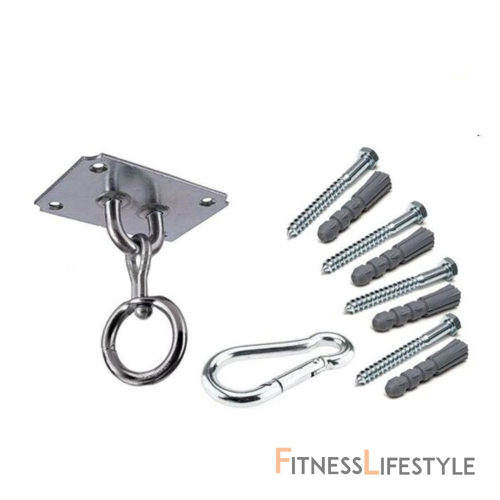 Stropný držiak na boxovacie vrecia, hrušky a speedbagy. Parametre: Rozmery: 100 x 70 x 2 mm Karabína: 6 mm Montážna sada súčasťou balenia N... Čítať viac