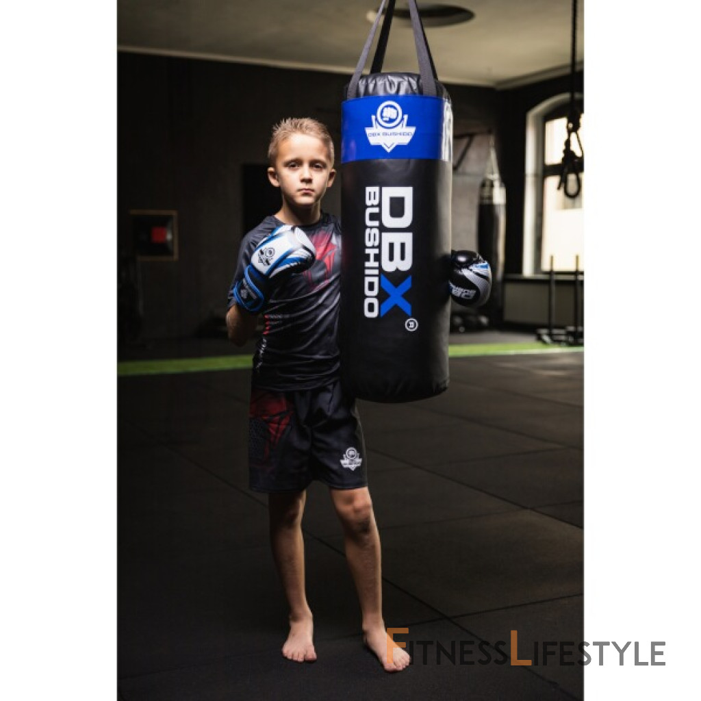 Boxovacie vrece DBX BUSHIDO je vyrobený špeciálne pre malé bojovníkmi vo veku od 5-tich do 14-tich rokov. Na rozdiel od ostatných detských boxovacích vriec je ten náš vyrobený z rovnakých materiálov ako profesionálny, veľký vrece a umožňuje tak tréning na maximálny výkon. Samotný vak má rozmery 80 x 30 cm a je vyrobený z Plawilu (dvojvrstvová, odolná plachtovina). Zhora je naplnený textilný rezankou a uzavretý spevneným šnurovaním. Vrece nesú 4 remene zakončené oceľovým okom s nosnosťou až 300 kg. Celková výška potom je cca. 120 cm.