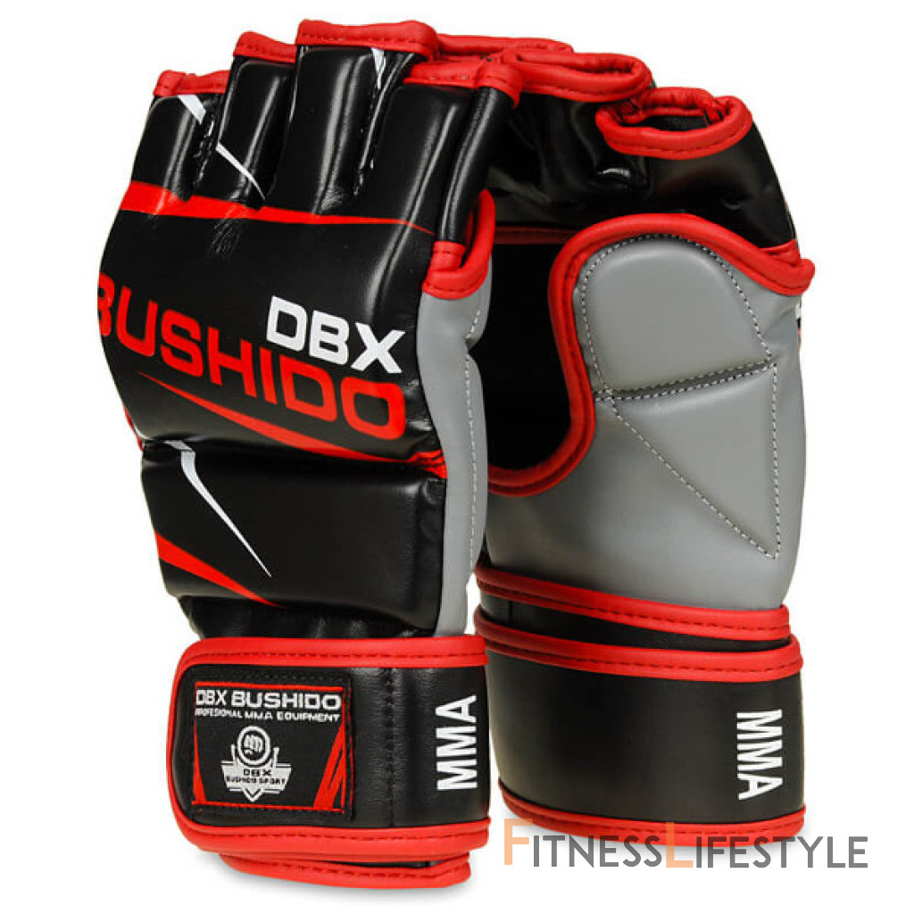 MMA a tréningové rukavice DBX BUSHIDO E1V6 sú vyrobené zo spevnené, umelej kože so zvýšenou elasticitou, vyplnené sú penou. Vďaka otvorenej vnútornej strane vám rukavica umožňujú zachovať priľnavosť a ruka dokonale vetrá. Naviac je rukavica vybavená ochranným prekrytím chrbta palca a dlhým, širokým popruhom pre stiahnutie zápästia, aby sa minimalizovalo prípadné riziko zranenia. Vnútorná strana je obšitá hladkým materiálom pre jednoduché nasadenie a zložení aj počas náročného tréningu. Anatomický tvar rukavice v spojení so zvýšenou elasticitou umelej kože zabezpečí ich komfortné užívanie.
