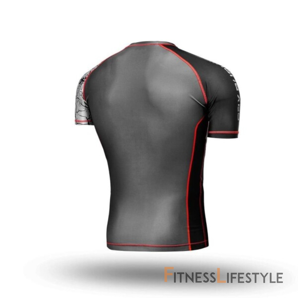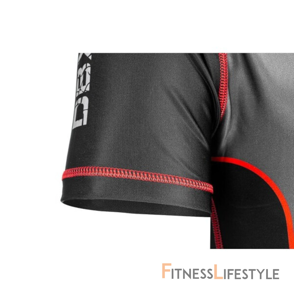 Kompresný tričko DBX Bushido R-121H Warrior využijete ako pri tréningu MMA, tak pri akejkoľvek inej aktivite. Tričko je vyrobené z funkčného DBX MoreDry materiálu, ktorý sa vyznačuje ľahkosťou, dokonalú ventiláciou a odvodom potu od tela. Vďaka tomu udržuje ideálnu teplotu pre prácu svalov i počas intenzívneho tréningu. Materiál je ďalej odolný voči roztiahnutiu, tričko si tak zachová svoj tvar po celú dobu životnosti. Tričko je ušité zo 6tich panelov pre maximálny rozsah pohybu. Šitie je prevedené plochým, šesťnásobným stehom, plochý tvar zamedzuje podráždenie pokožky. Potlač je vykonávaný sublimáciou a je odolný voči praniu a oderu, zároveň zachováva priedušnosť materiálu.