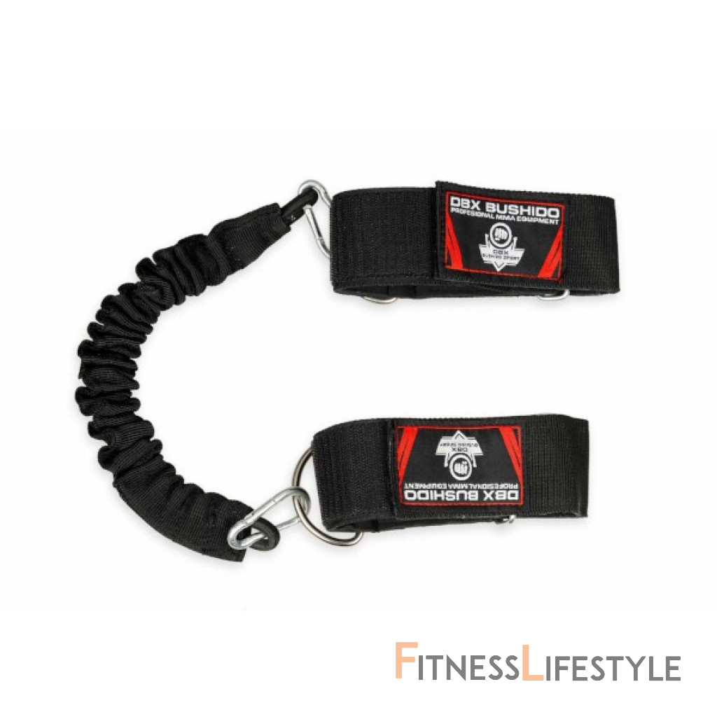 DBX BUSHIDO P3 DBX Foot Work je expandér, ktorý sa používa na zlepšenie rýchlosti a dynamiky a techniky práce nôh. Odpor expandéra navyše napomáha vybudovať návyk, kedy sa po kopu vracia noha späť na pozíciu. Na odporovou gumu je nasunutý golier z veľmi odolnej textílie, vďaka ktorej nedochádza k opotrebeniu expandéra počas kontaktu s telom cvičenca. Konce sú opatrené karabínami pre pripnutie k popruhom. Popruhy na nad členky sú opatrené suchým zipsom.