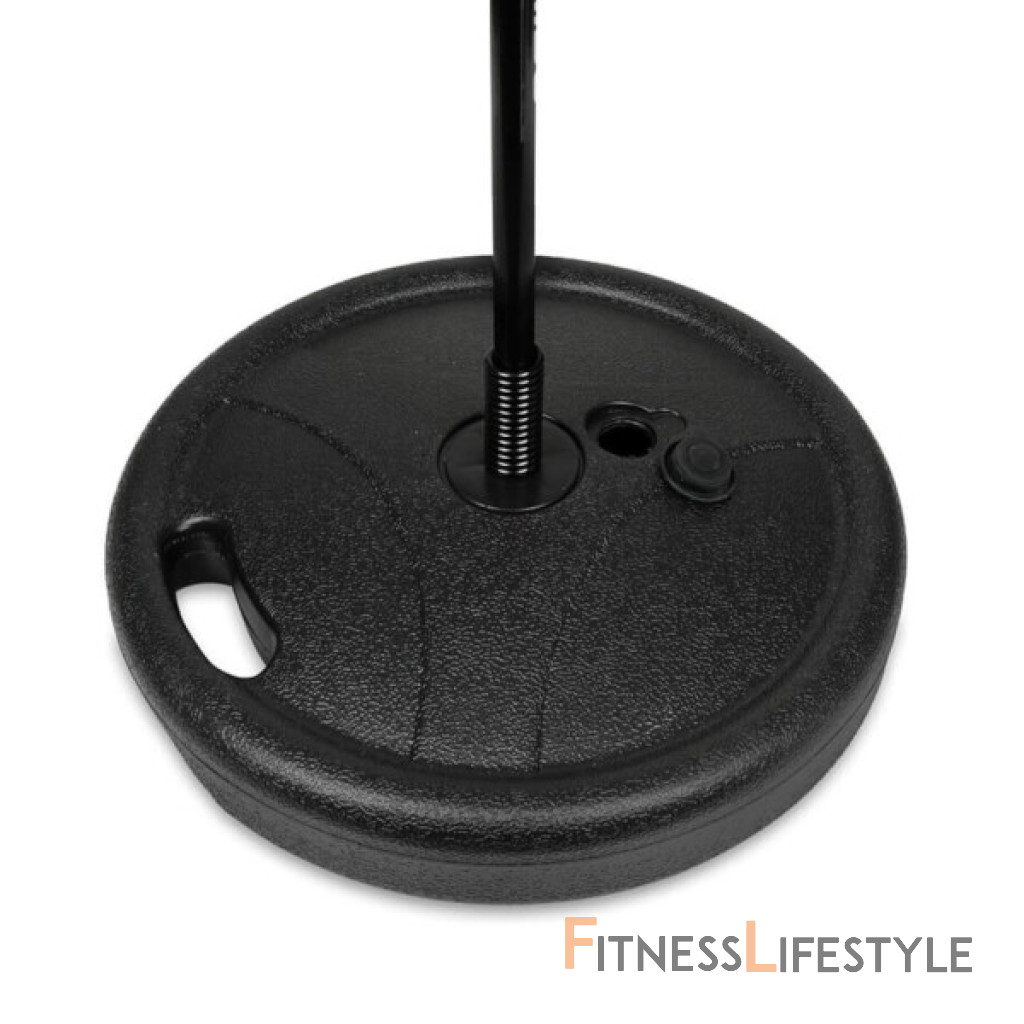 Základňa stojanu sa pre maximálnu stabilitu naplní pieskom, alebo vodou. Výška hrušky je plynule nastaviteľná v rozsahu 72 - 102 cm a je tak vhodná pre deti od 4 rokov do dosiahnutia výšky 140 cm. O reflexii hrušky sa stará vinutá pružina v spodnej časti stojana. Samotná hruška je vyrobená zo spevnenej, syntetickej kože. Šírky 18 cm a výška 23 cm je ideálny práve pre malé "bitkára". Súčasťou balenia je aj pumpička pre pohodlné nafúknutie hrušky.