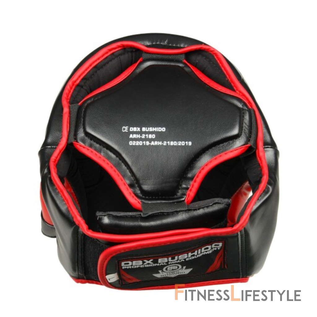 Boxerská helma DBX BUSHIDO ARH-2180 je vyrobená zo spevnenej, umelej kože a je vyplnená PU penou, ktorá dokonale pohlcuje nárazy. Prilba je navrhnutá v súlade s bezpečnostnými štandardmi a zaisťuje tak bezpečnosť a komfort počas zápasu, tréningu či nácviku sa sparing partnerom. Helma je vybavená polykarbonátovou maskou, kde tvar je navrhnutý tak, aby boli chránené lícne kosti, oči, nos a uši. Spevnenie v oblasti čeľuste jej poskytuje väčšiu stabilitu a napomáha predchádzať jej zraneniam. Helma je vyrobená z umelej kože so zvýšenou elasticitou. Vnútri je vyplnená penou vysokej hustoty a povrch je upravený tak, aby nenasávalo pot. Vďaka tomu odoláva praskaniu a ľahko sa udržiava. Zo zadnej strany je široký pás so suchým zipsom, ktorý zaručuje, že helma bude na hlave presne sedieť.