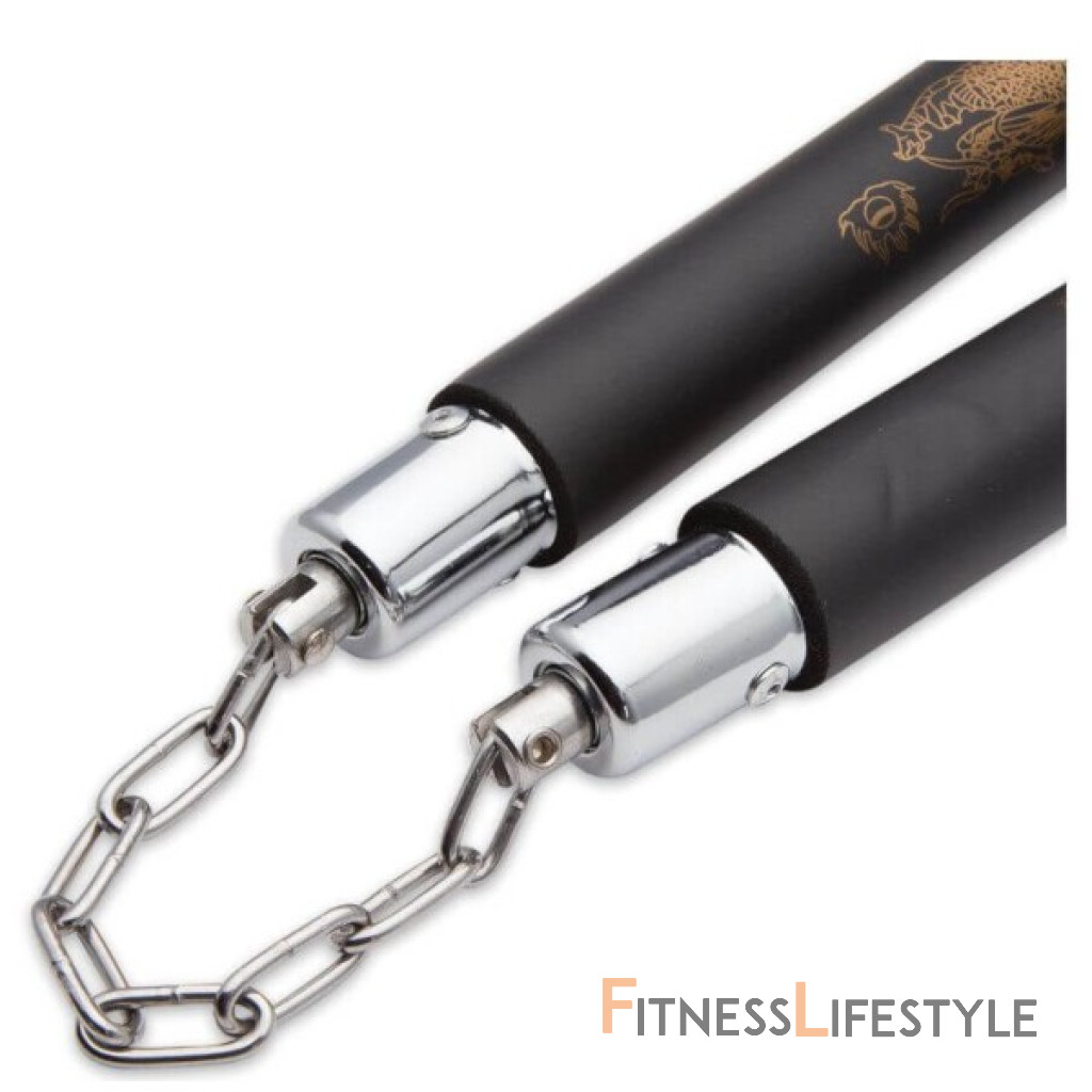 Nunchaku, čiže nunčaku DBX BUSHIDO ARW-5049 sú vďaka penovým rukovätiam vhodné k tréningu bojových umení. Vysoká vrstva peny znižuje riziko zranenia. Oceľové valčeky sú opatrené ložiskami a spojené zváraným reťazou.
