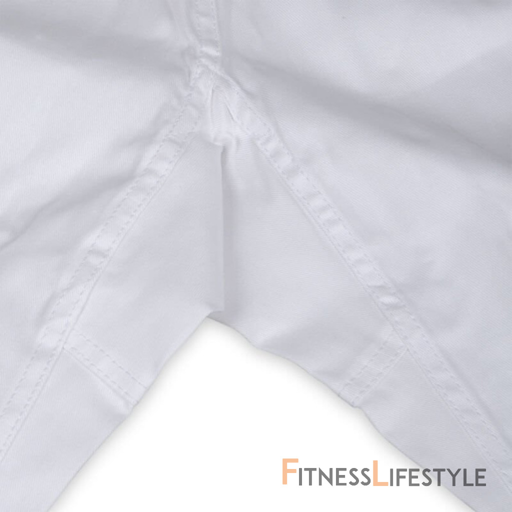 Ľahký a zároveň odolný materiál (zmes polyesteru a bavlny, cca 200 g/m2) zaisťuje voľnosť pohybu a výbornú ventiláciu, vďaka ktorej sa vaše dieťa môže plne sústrediť na tréning. Pohodlný strih, systém výstuže v rozkroku a na okrajoch a dvojitý systém zapínania nohavíc (guma + šnúrka) sú zárukou, že odev vydrží každý tréning a bude slúžiť dlhú dobu.