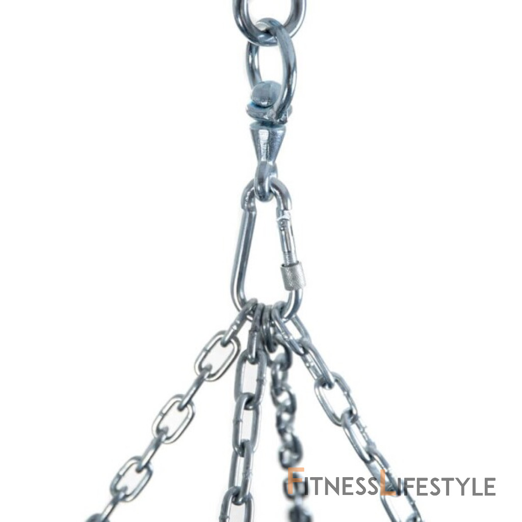 Vrece nesú 4 reťaze zakončené karabínou a otočným závesom, celková nosnosť reťazí ja až 640 kg. Nosná oká majú tvar trojuholníka, toto prevedenie nedeformuje nosné, nylonové popruhy ako v prípade okrúhlych ok. Každý nylonový popruh má nosnosť až 500 kg. Celková výška potom je cca. 180 cm. Pre obmedzenie pohybu vreca počas tréningu je na spodnej strane inštalované oceľové oko pre pripevnenie k podlahe pomocou gumového expandéra.