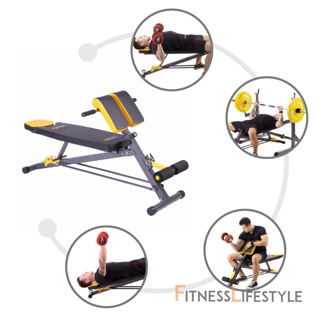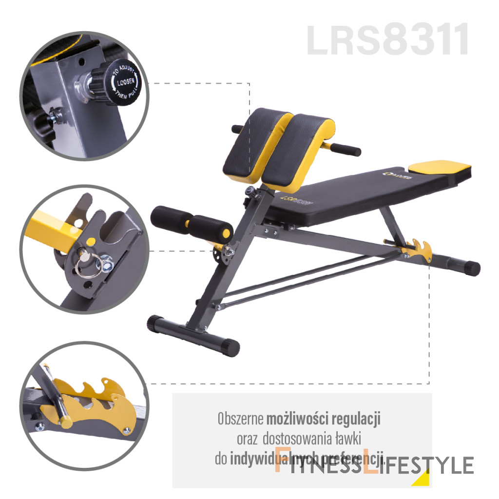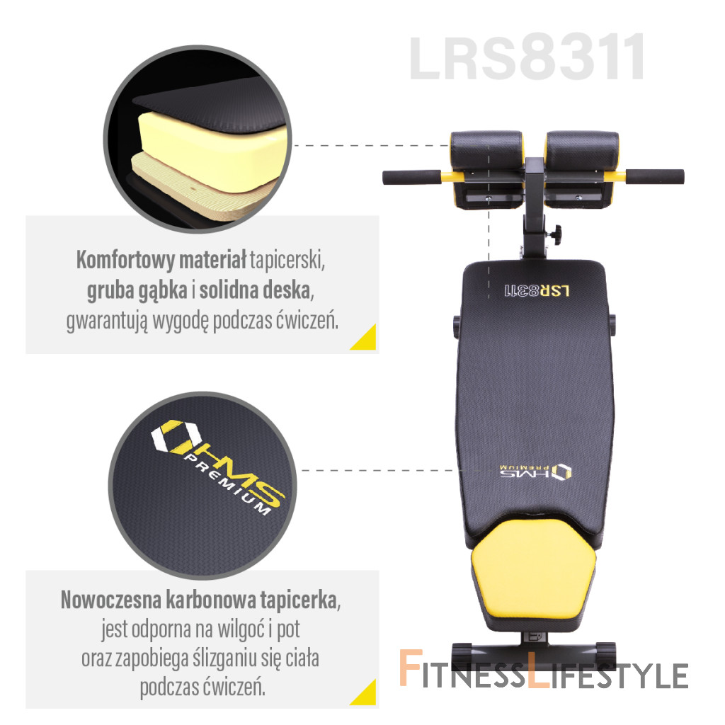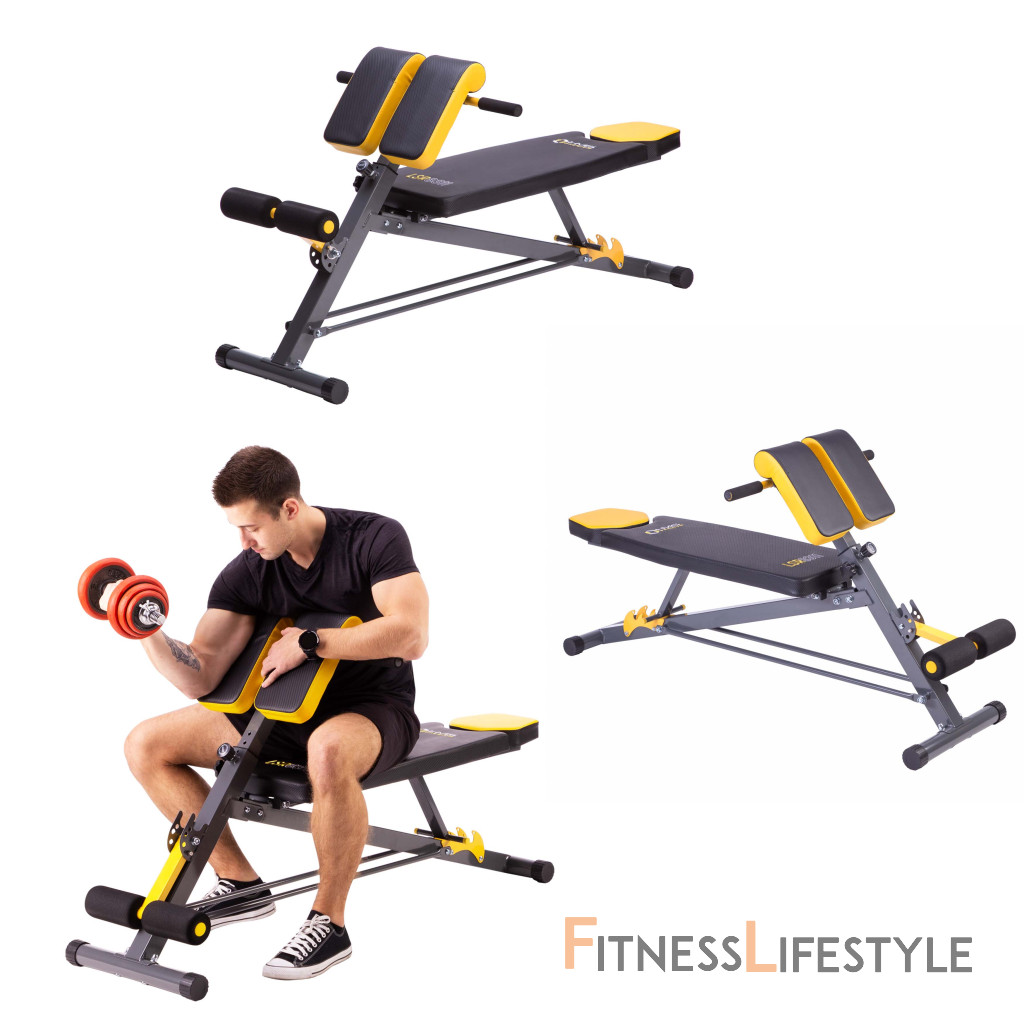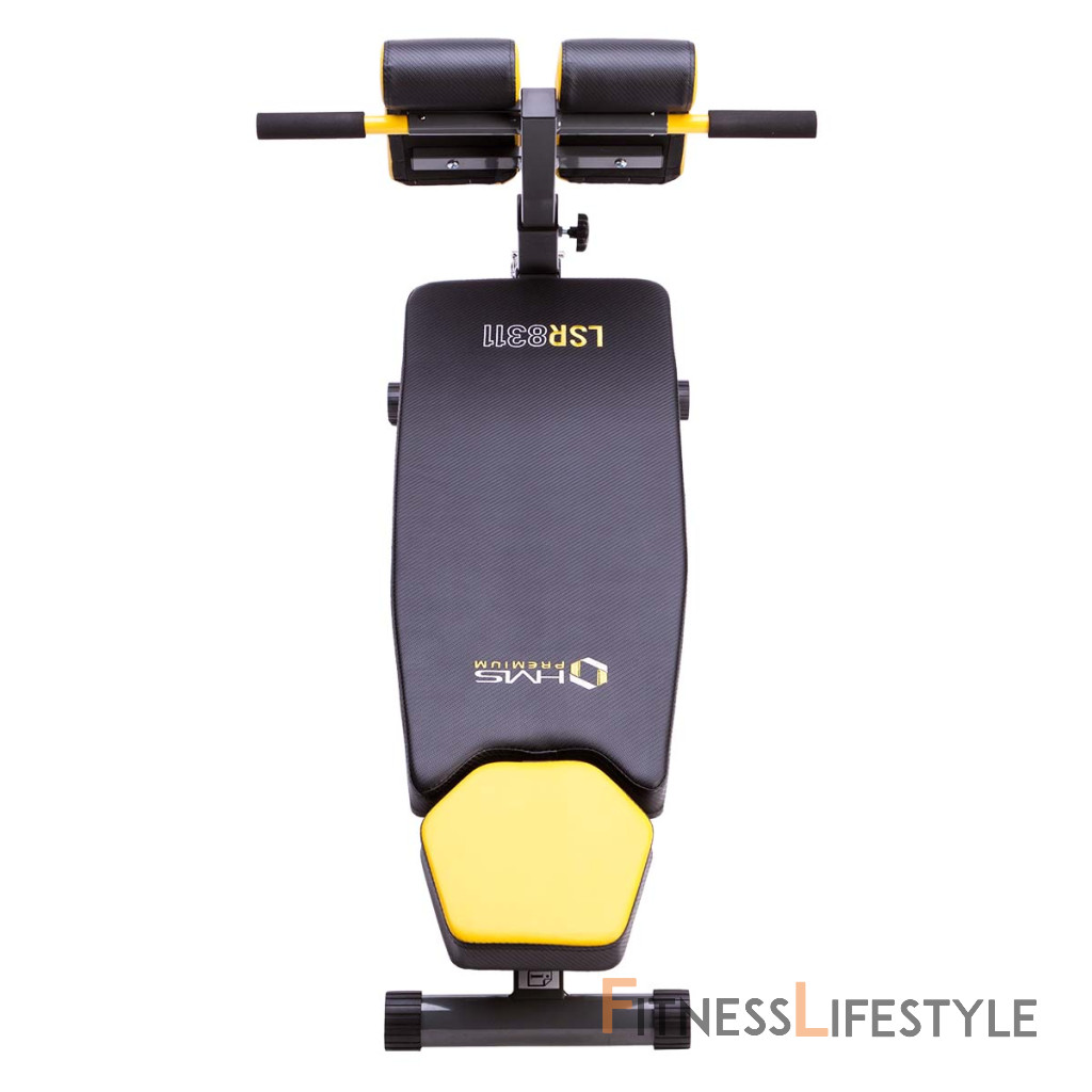 HMS Premium LSR8311 v sebe kombinuje klasickú lavicu, šikmú lavicu, lavicu s bicepsovou opierkou (modlitebník) a hyperextenziu.