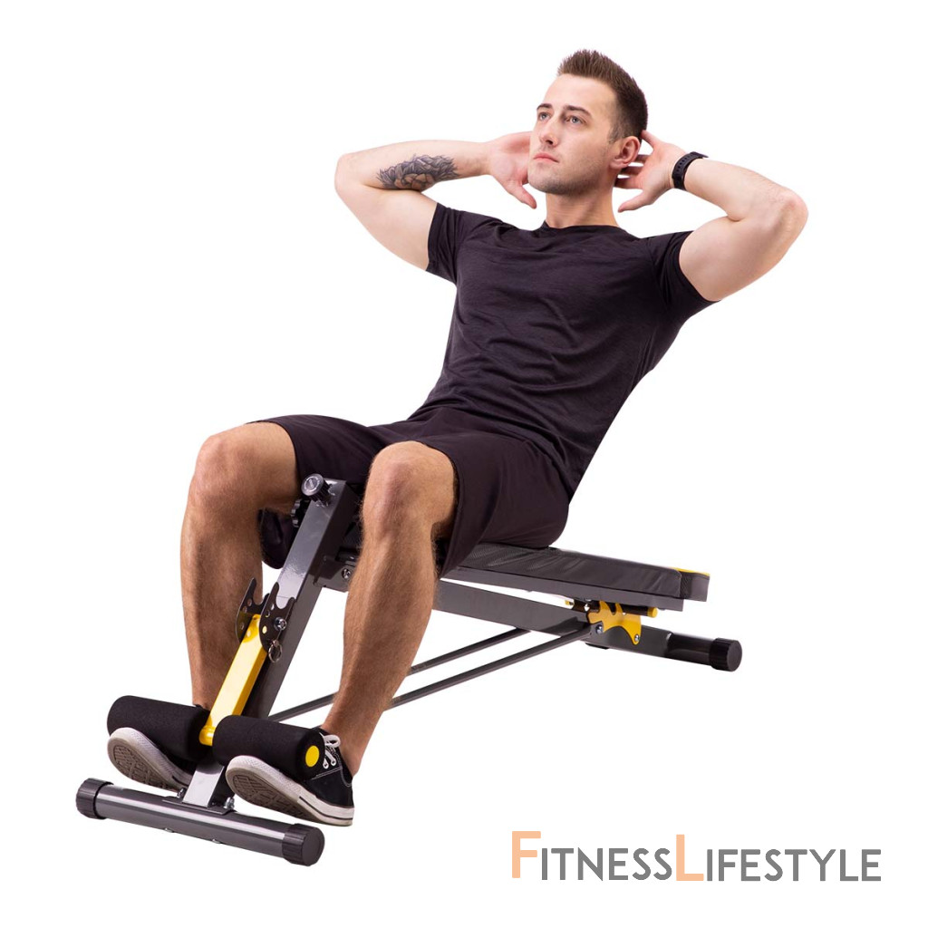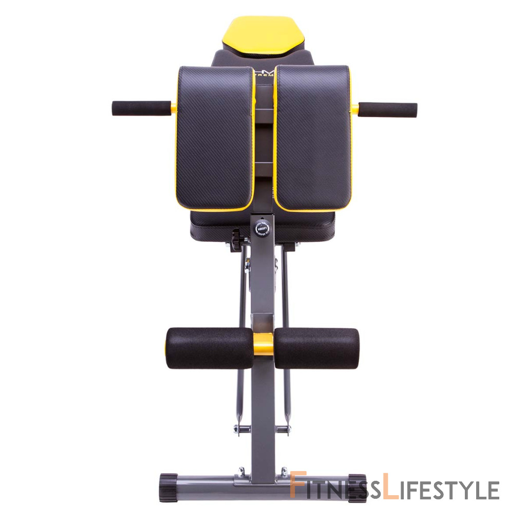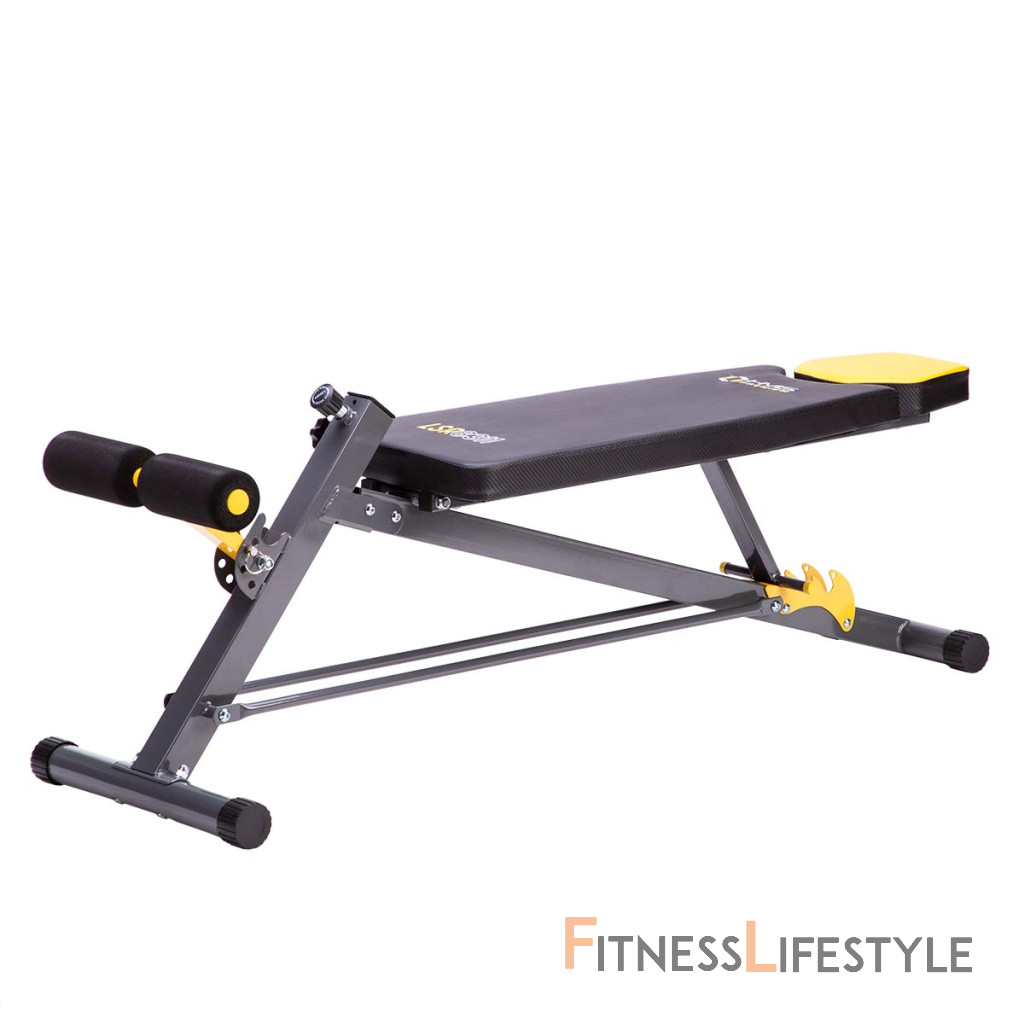 Zarážka nôh s penovými valcami je nastaviteľná do 4 polôh. Madlá pod modlitebníkom slúžia na tréning klikov.