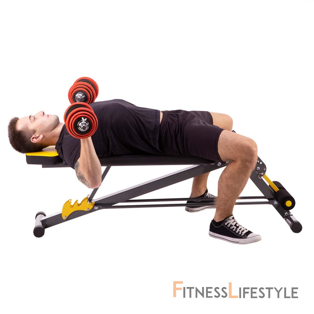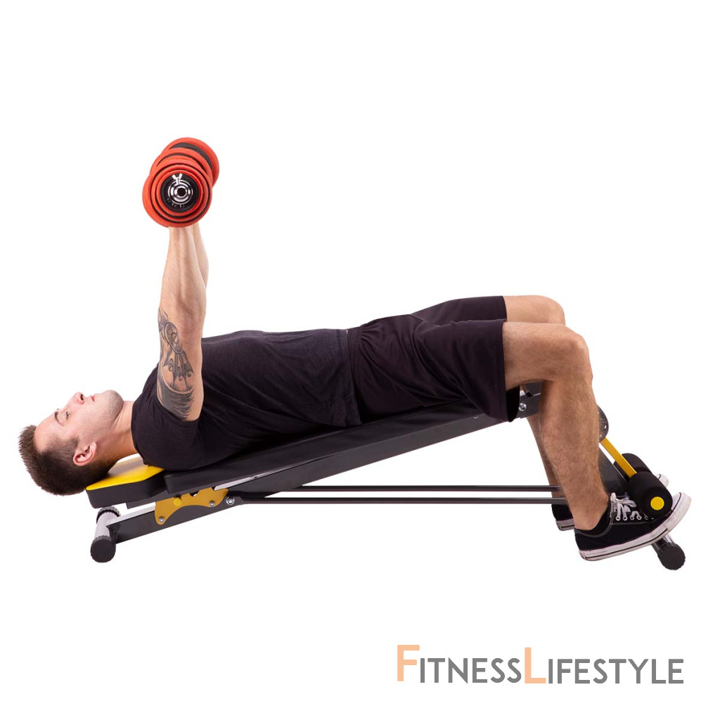 Chrbtová opora je nastaviteľná do 3 polôh, vo vodorovnej polohe je možné na lavici vykonávať väčšinu cvikov s činkami, pokiaľ sa opora nastaví do negatívneho uhla, potom získame šikmú lavicu na posilňovanie brucha.