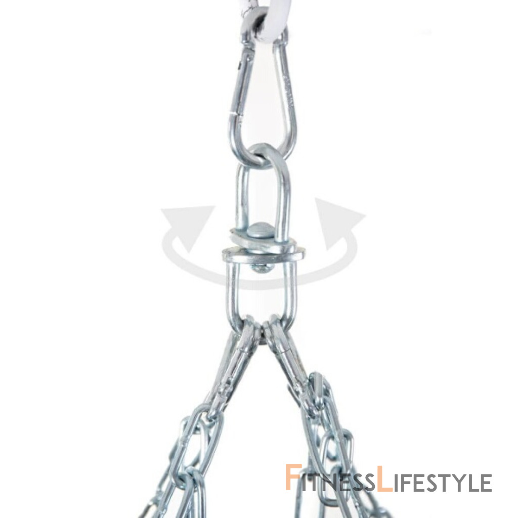 Vrece nesú 4 reťaze zakončené karabínou a otočným závesom, celková nosnosť reťazí je až 640 kg. Nosné oká majú tvar trojuholníka, toto prevedenie nedeformuje nosné, nylonové popruhy ako v prípade okrúhlych ôk. Každý nylonový popruh má nosnosť až 500 kg. Celková výška potom je cca. 180 cm. Pre obmedzenie pohybu vreca počas tréningu je na spodnej strane inštalované oceľové oko na pripevnenie k podlahe pomocou gumového expandéra.