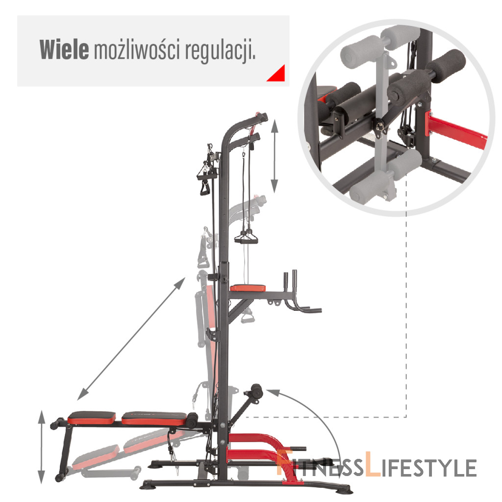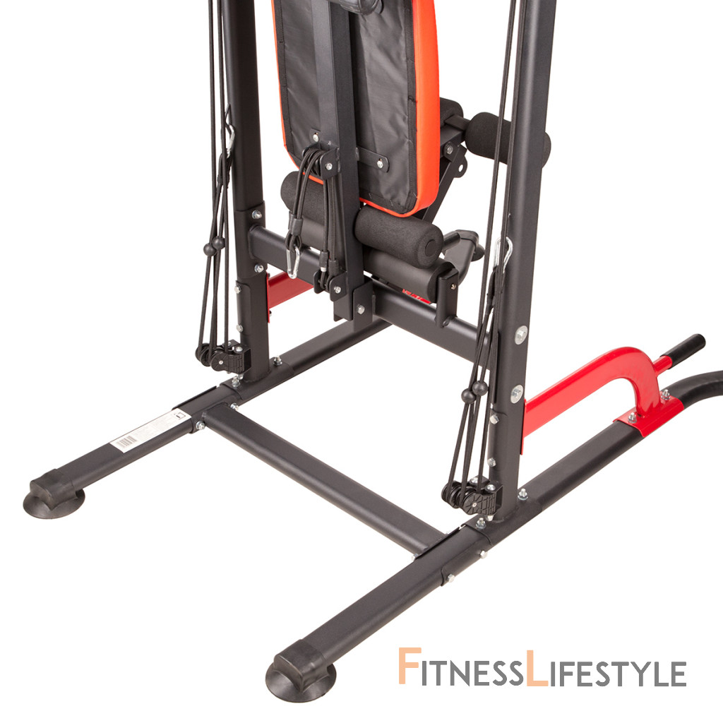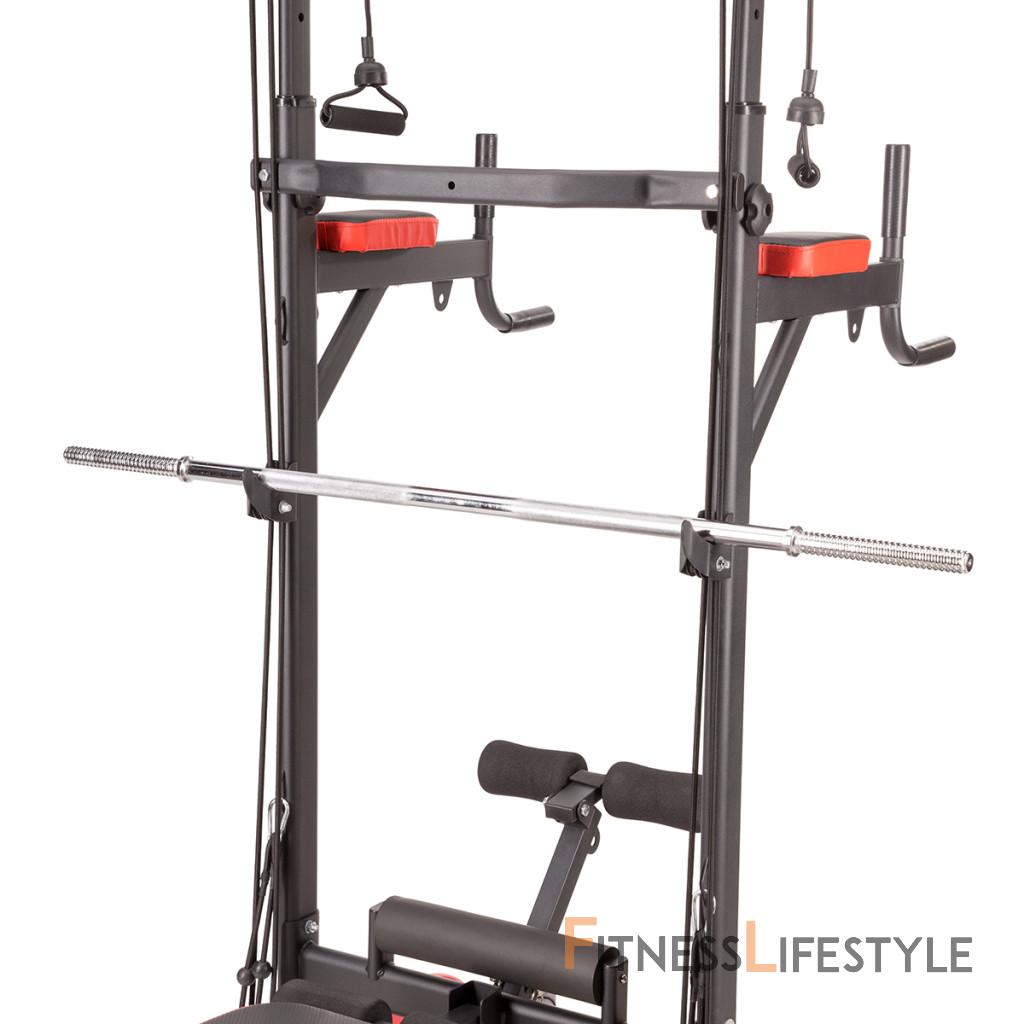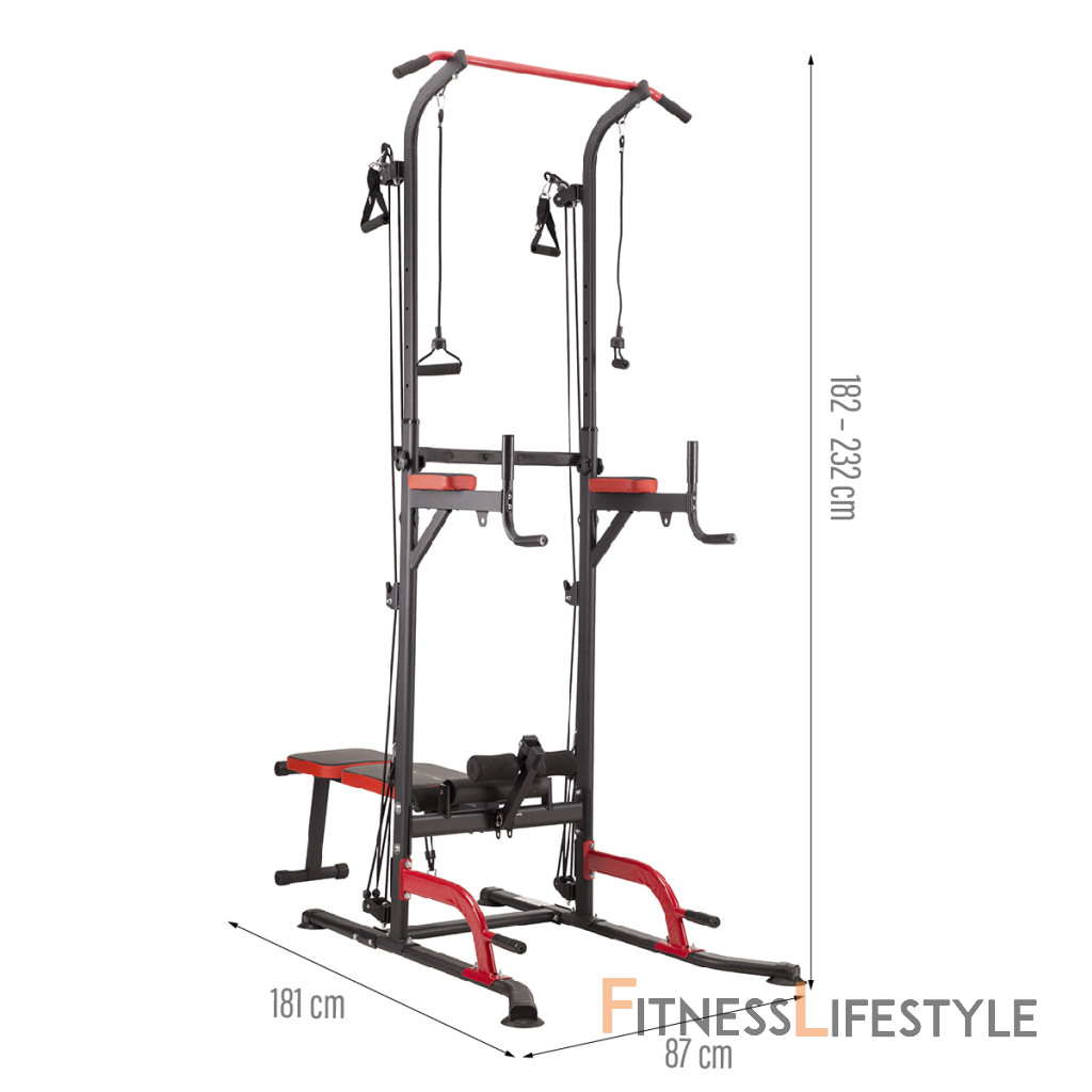 PWL8325 je vyrobená z najkvalitnejších materiálov. Všetky rukoväte sú potiahnuté protišmykovým materiálom, ktorý zaručuje pevný úchop pri cvičení. Hrazdu je možné výškovo nastaviť do 232 cm. Lavička sa dá sklopiť pre úsporu miesta.