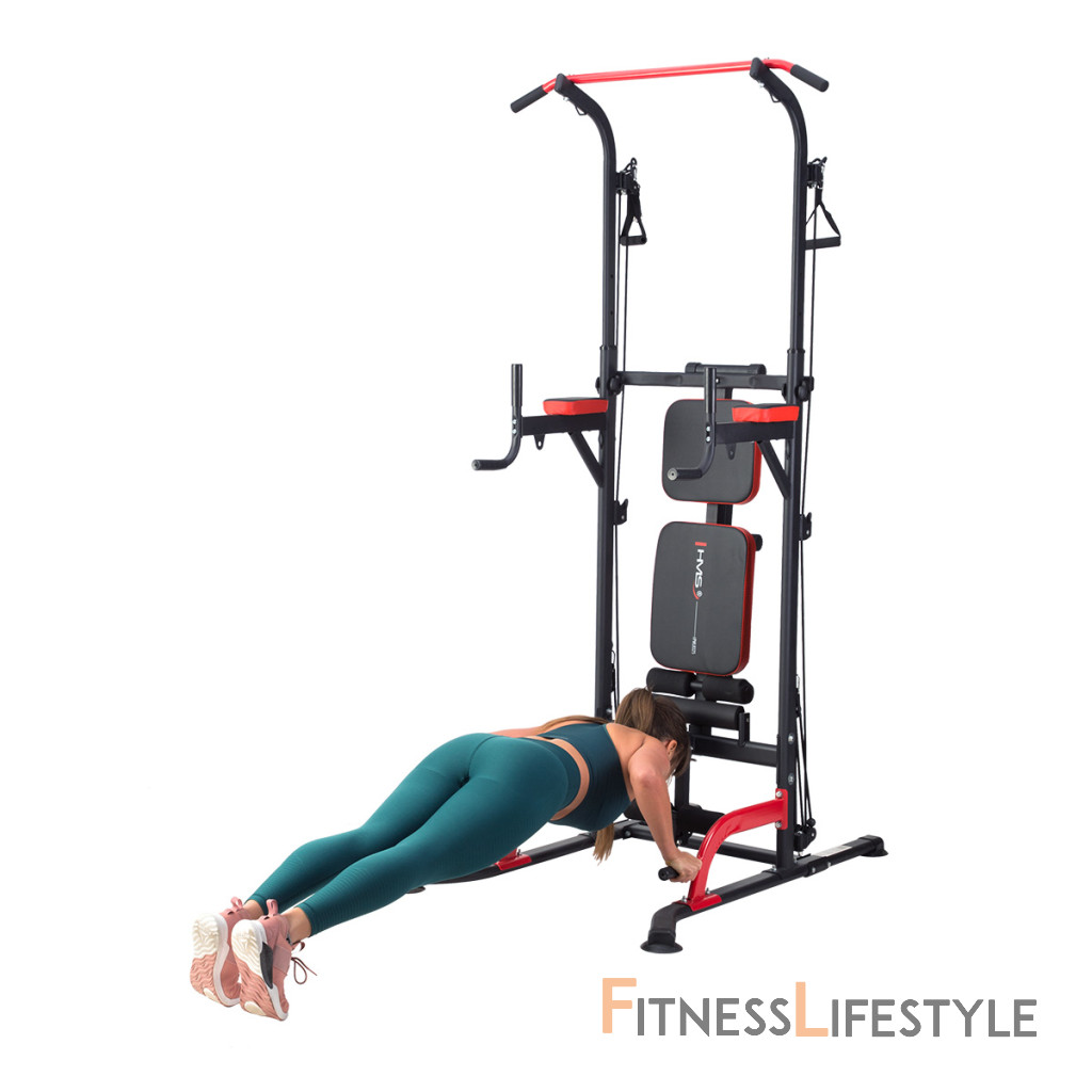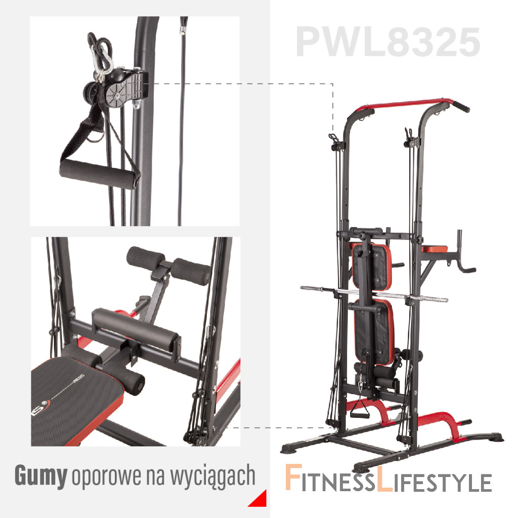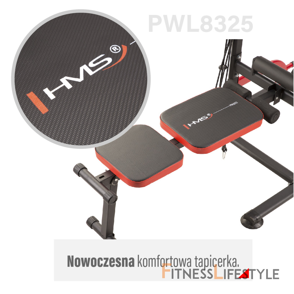 Príťahy na hrazde a kľučky na bradlách alebo "dipy" sú dva cviky, ktoré veľmi silne rozvíjajú dve skupiny agonistických a antagonistických svalov, teda najširšie chrbtové svaly, bicepsy, prsné svaly a tricepsy. Spodné podpery umožňujú realizáciu hlbokých klikov. Vďaka tomu svaly pri každom pohybe oveľa viac pretiahneme, čo vedie k ich rýchlejšiemu rastu. S PWL8325 je tiež možné trénovať brušné svaly vďaka lavici v šikmej polohe a podrúčkam umiestneným na bradlách. Lavičku je možné nastaviť aj do vodorovnej polohy, čo umožňuje vykonávať cviky s činkami. Integrovaný držiak na veľkú činku umožňuje trénovať Bench press, súčasťou balenia je aj 120 cm dlhá os s priemerom 24 milimetrov. Horné a spodné kladky sú tvorené dvoma pármi gumových lán, ktoré je možné kombinovať pomocou karabín a ich napínanie pomocou ôk na hlavnom ráme. Všetky komponenty robia z tohto výrobku HMS skutočne multifunkčné zariadenia.