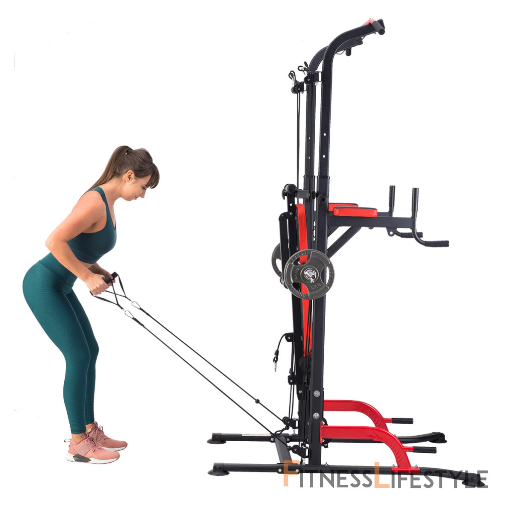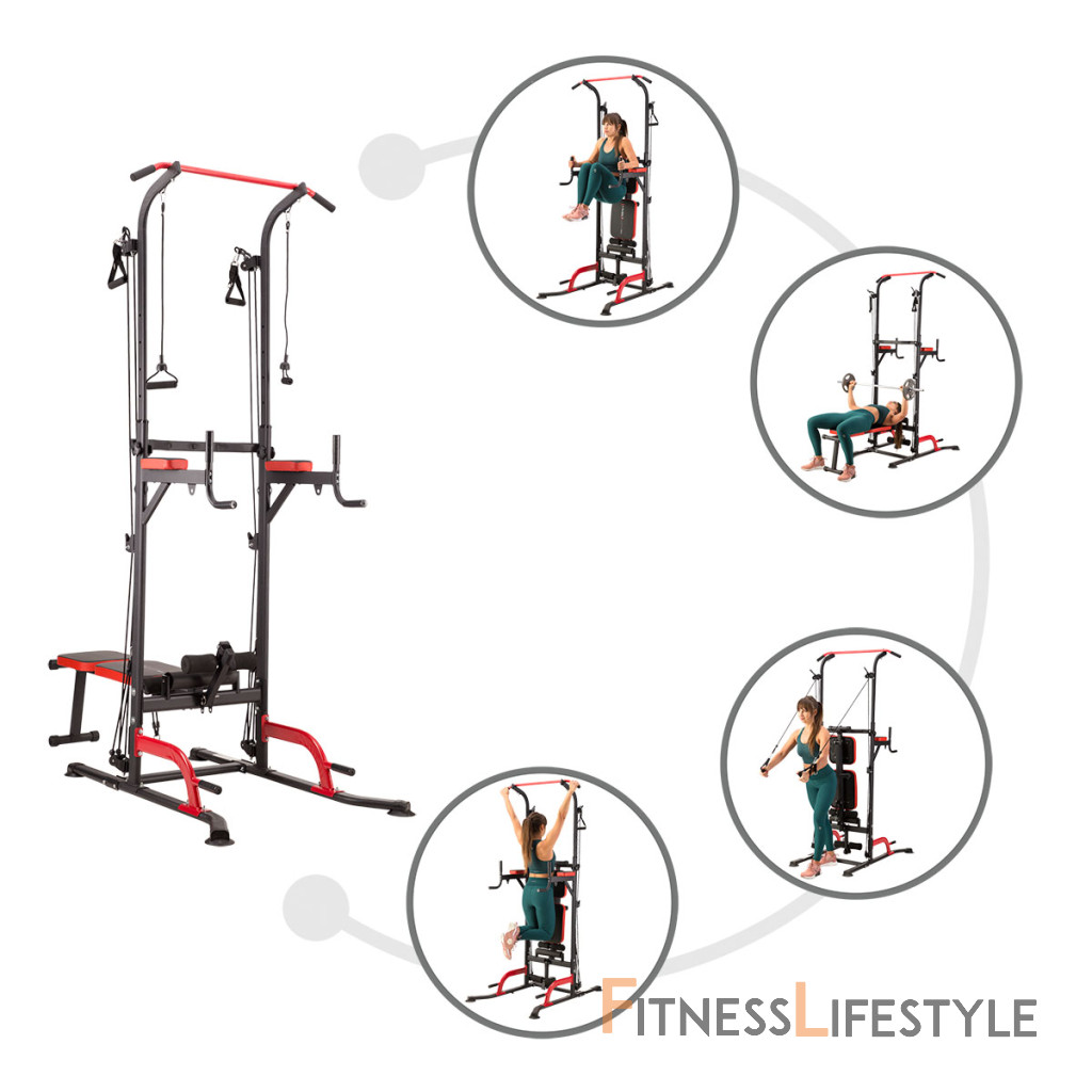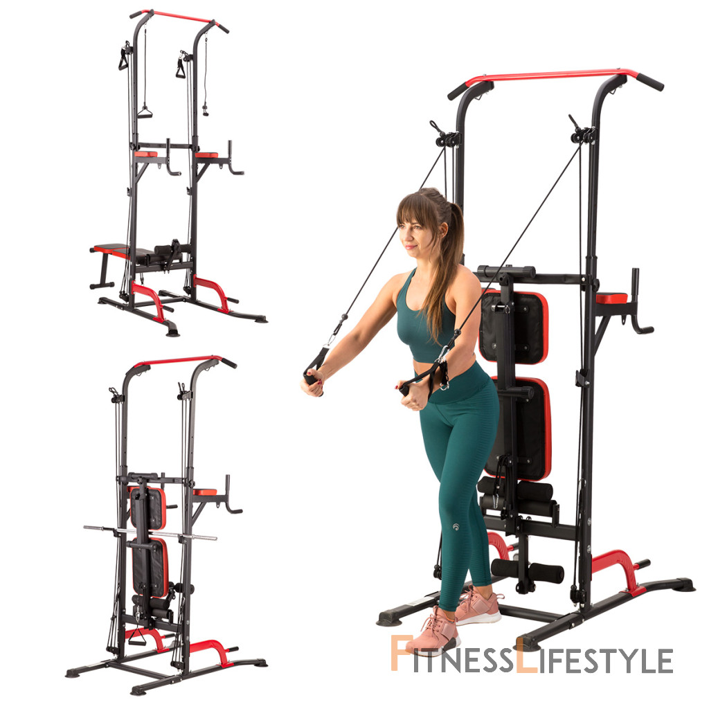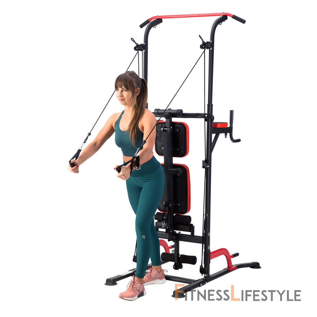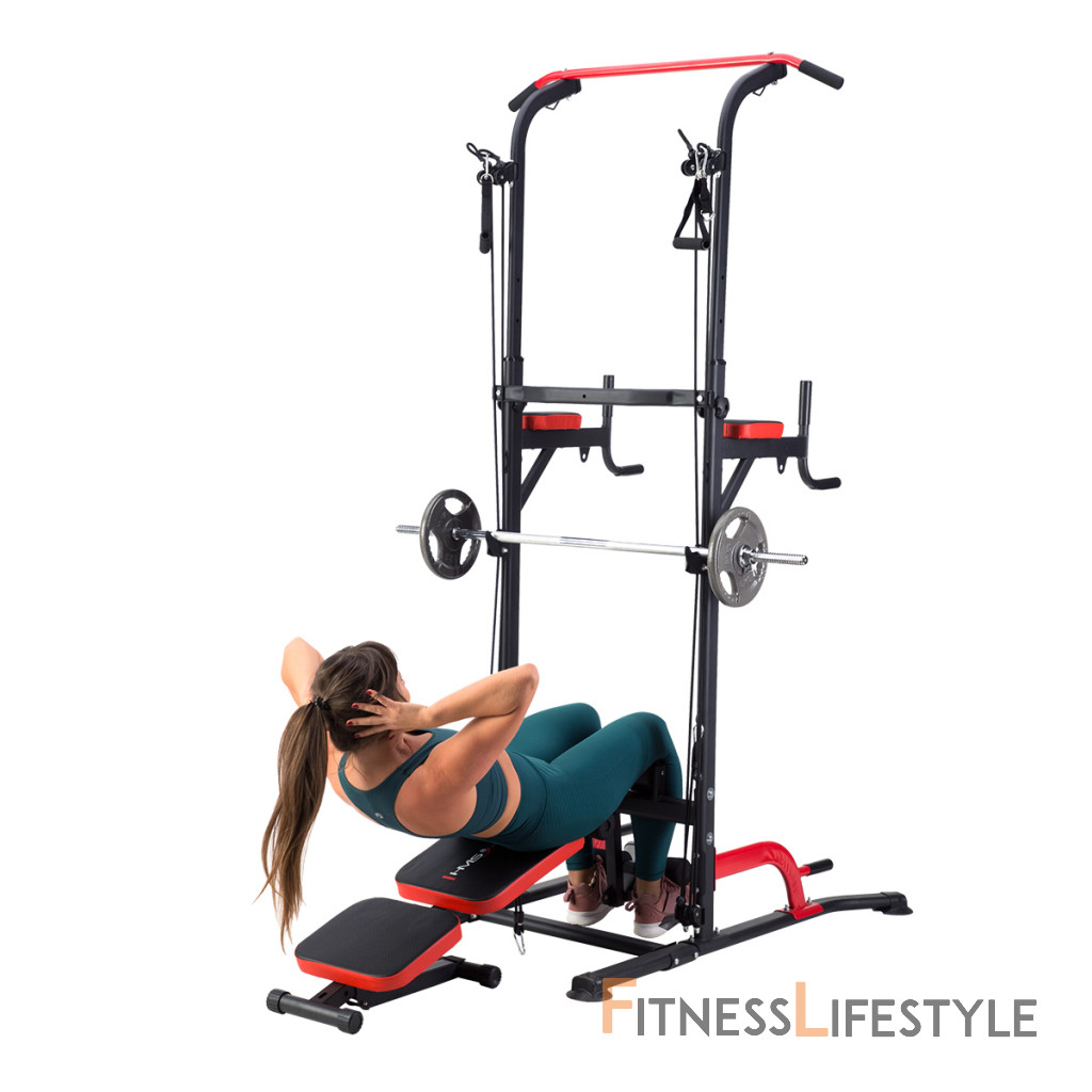 HMS PWL8325 je multifunkčná hrazda s podperami, bradlami, hornou, spodnou kladkou a polohovateľnou lavicou. Umožní vám komplexne precvičiť všetky svalové skupiny hornej polovice tela – hrudník, chrbtové svaly, tricepsy a brucho.