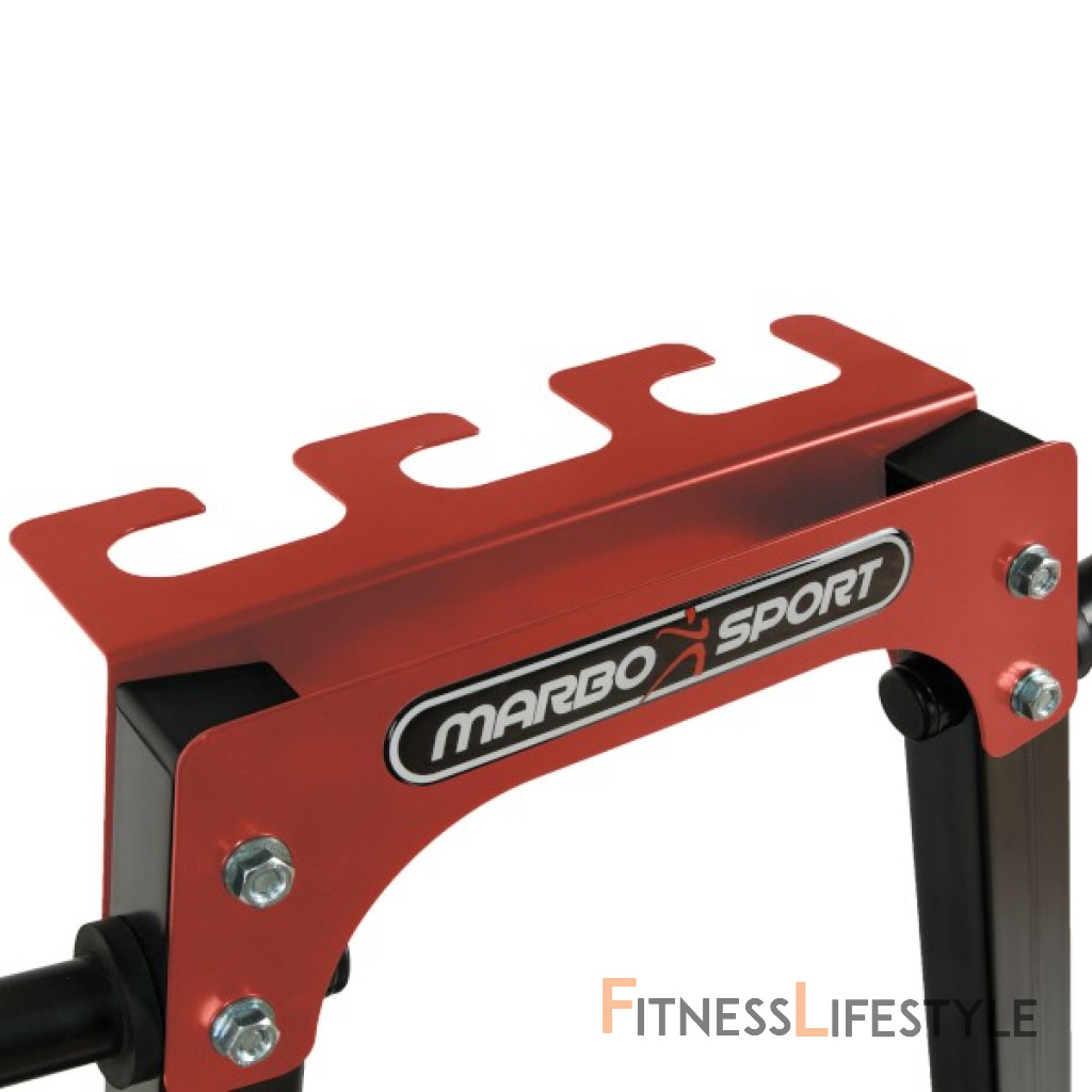 Stojan na závažie a tyče Marbo MH-S207, vynikajúca ergonómia a funkčnosť umožní, že sa na tento stojan zmestia tyče, ale aj závažia. Konštrukcia profilov 40x40mm dosahuje maximálnu záťaž 300 kg. Aby vám bola poskytnutá najvyššia úroveň bezpečnosti boli naše produkty testované a získali osvedčenie o bezpečnosti podľa najprísnejších európskych noriem. Výsledkom týchto testov sú Top osvedčenia o bezpečnosti.