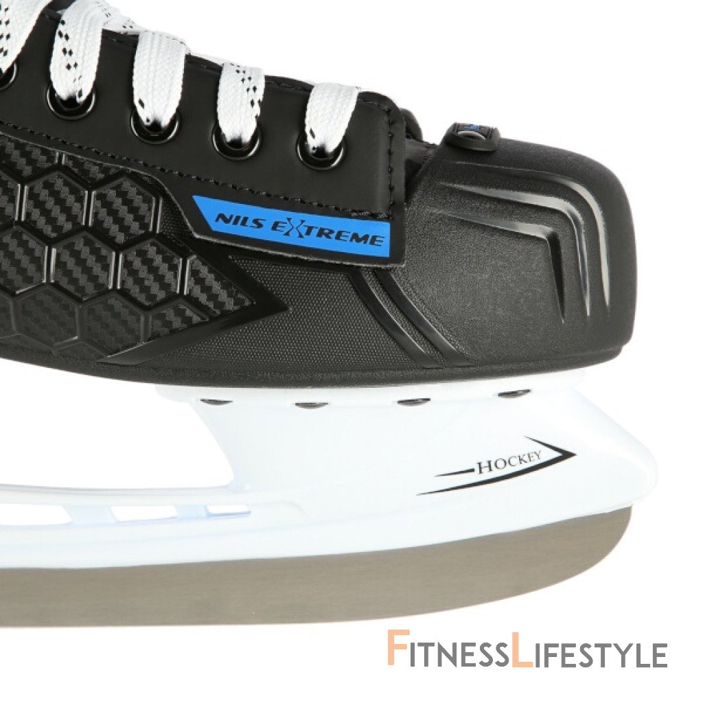 Hokejové korčule NILS Extreme NH8588 sú určené pre začiatočníkov a stredne pokročilých korčuliarov. Konštrukčne je rám korčule vyrobený z odolného plastu doplneného o tvrdú škrupinu, ktorá sa veľmi dobre prispôsobí tvaru nohy. Zaistí pritom vysoký komfort a ochranu nohy proti tepelným stratám. Zosilnená špička korčule zabraňuje zraneniu. Anatomická konštrukcia zadnej a vnútornej časti korčule spolu so šnurovaním poskytujú veľmi dobrú stabilizáciu členku.