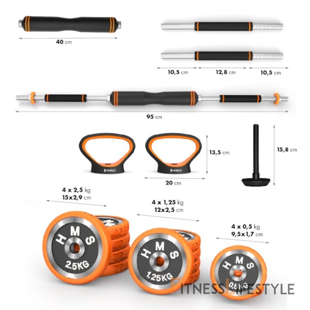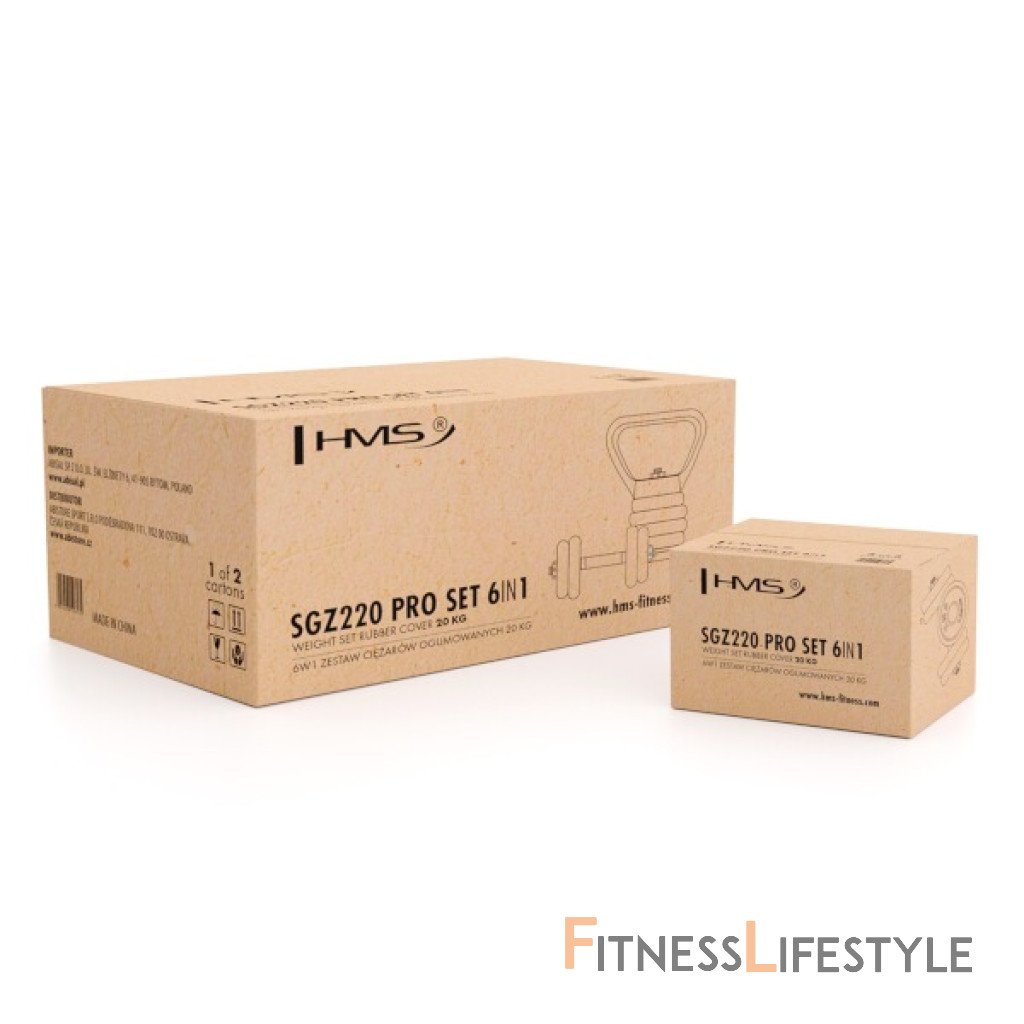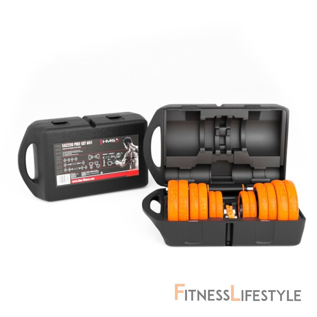 HMS SGZ220 Pro je inovatívne riešenie 6v1 pre každú domácu posilňovňu. Základný stavebný prvok tvoria 2 nakladacie, jednoručné činky a sada kotúčov. Vďaka bohatému príslušenstvu ide z týchto základných činiek zostaviť obojručnú činku, jeden kettlebell, činku s tromi úchopmi, činku s bočným madlom a podpery na kľučky.