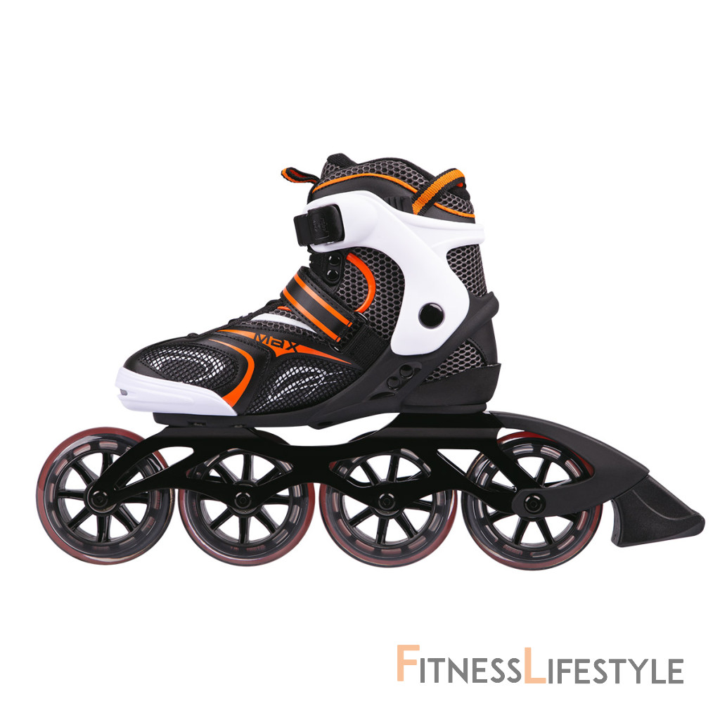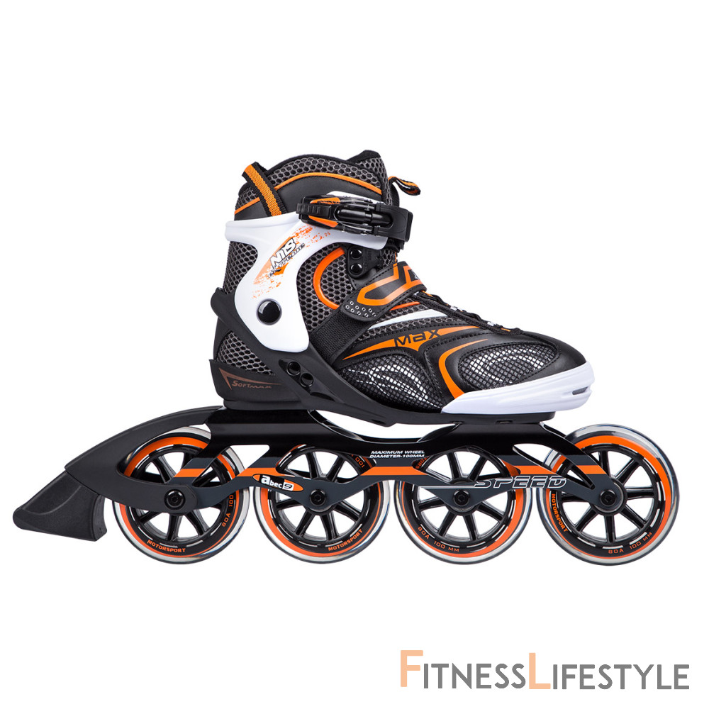 Kolieskové korčule NILS EXTREME NA 1060 S sú slalomové korčule ideálne na rýchlu jazdu. Polomäkká topánka je vyrobená z kombinácie nylonu a polypropylénu vystuženého skleným vláknom, ďalej je vybavená systémom ventilácie pre maximálne pohodlie. Vložka je priedušná a jej zapínanie je riešené klasickou trojkombináciou (dvojsekčná pracka, opasok so suchým zipsom a šnurovanie). Nôž je vyrobený z hliníka s hrúbkou 3,4 mm. PU kolieska s priemerom 100 mm a tvrdosťou 82A sú osadené ložiskami ABEC 9. Korčule sú vhodné pre pokročilých a skúsených jazdcov.