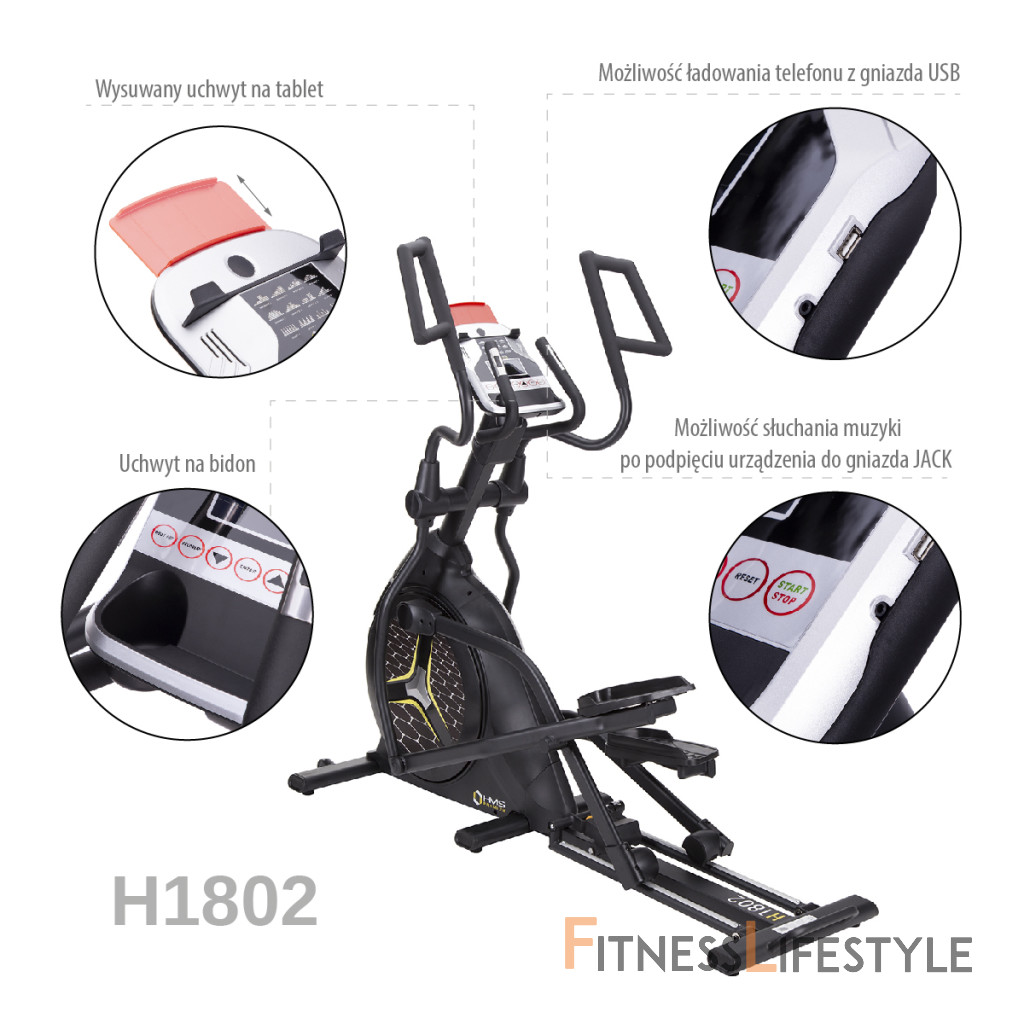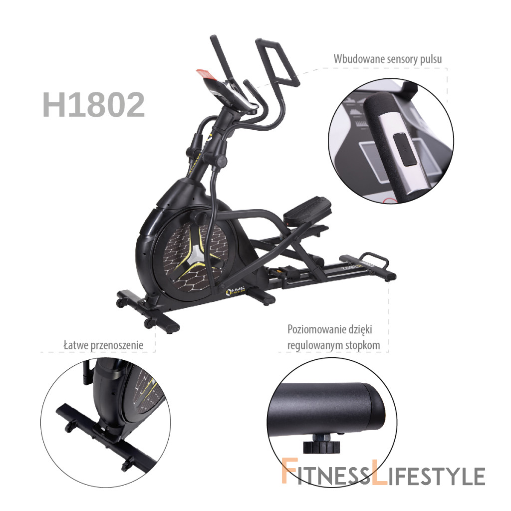 Eliptický trenažér HMS Premium H1802 je určený na intenzívny tréning či už v doma, alebo napríklad v klubovej posilňovni, alebo v hotelovom fitnesse. Najväčšou prednosťou modelu je stabilná konštrukcia a 9 kilogramové záťažové koleso v kombinácii s tichou, magnetickou brzdou.