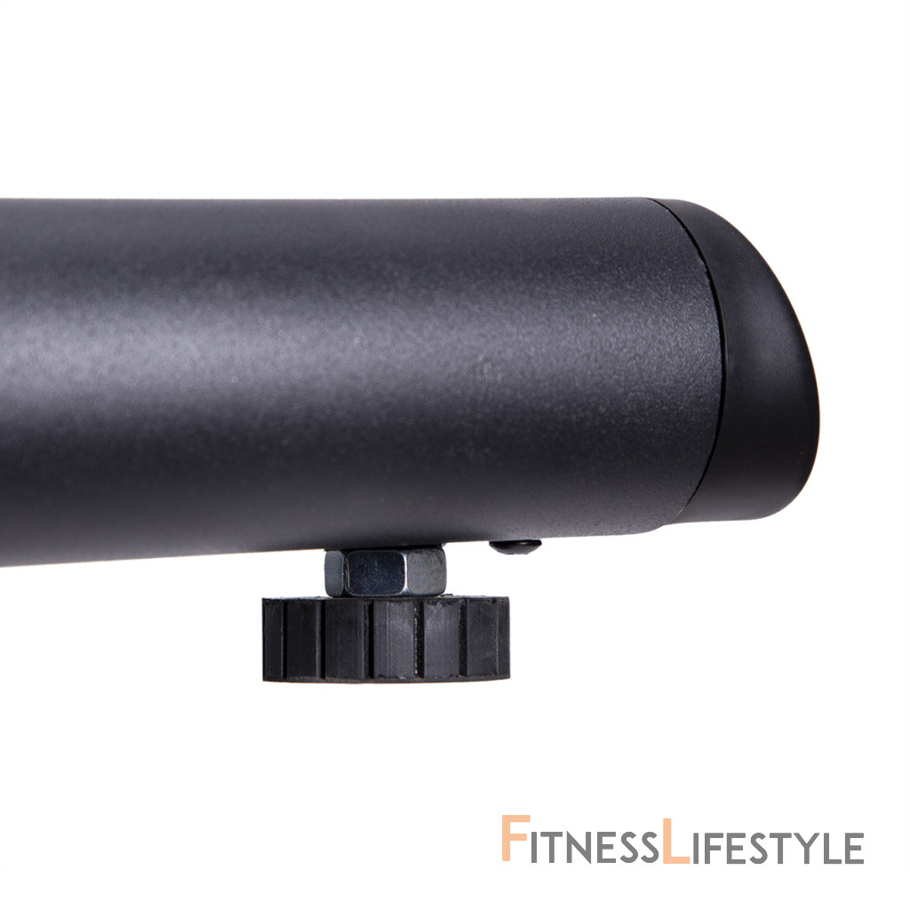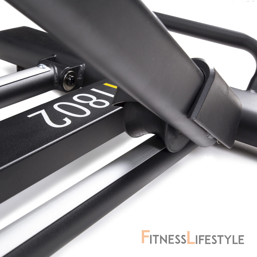 Robustná oceľová konštrukcia garantuje nosnosť až 150 kilogramov, predný stabilizátor je osadený transportnými kolieskami pre ľahké presúvanie trenažéra. Skrutkovacie stopky umožňujú vyrovnanie trenažéra do roviny aj na ľahko nerovnom podklade. H1802 je tiež vybavený systémom na zmenu výšky kroku.