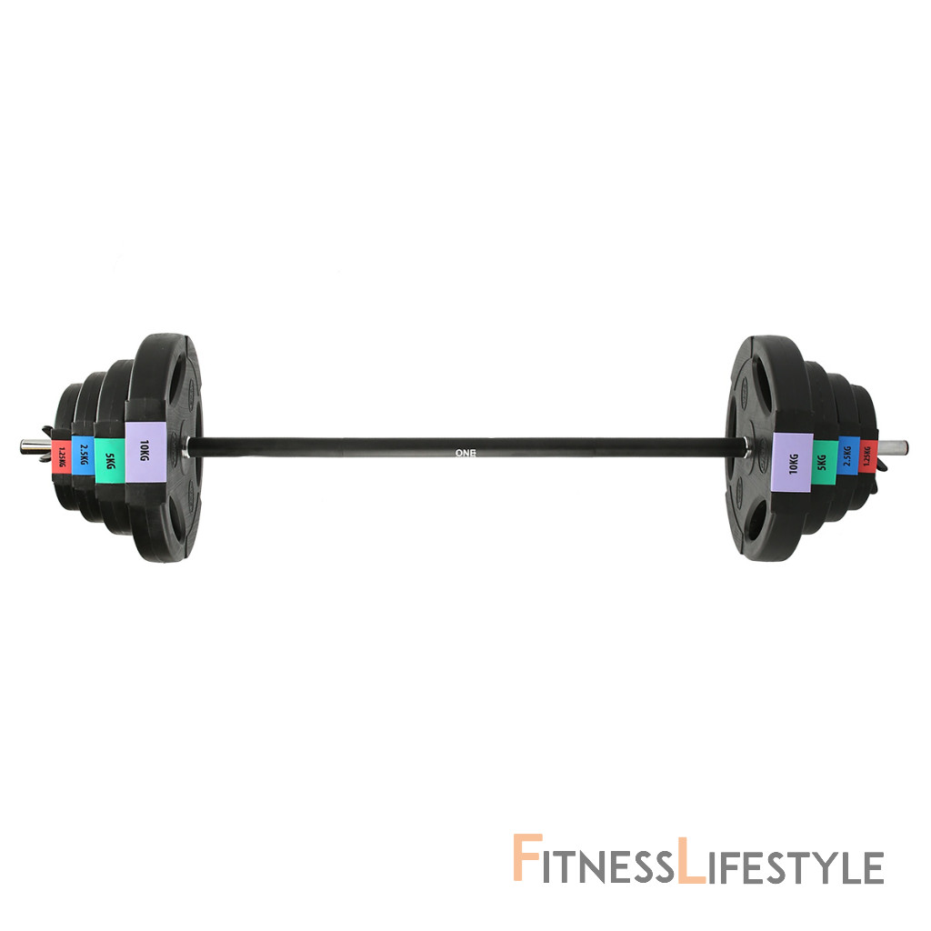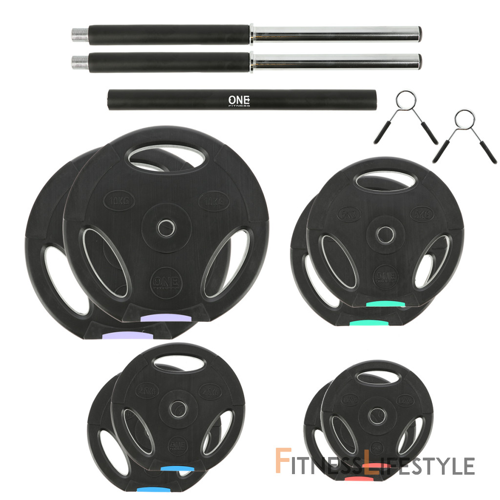 Kompletná sada obojručnej, nakladacej činky s celkovou hmotnosťou 42 kilogramov, to je ONE Fitness GSPO40. Nakladacie činky patria ku klasickému vybaveniu každej domácej posilňovne.
