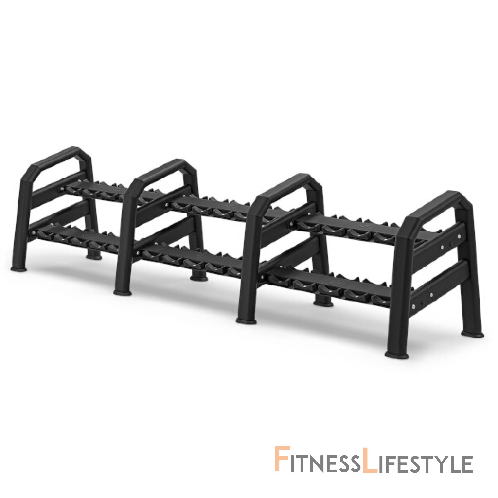 Kaskádový stojan na činky UpForm UR-S003 od výrobcu MARBO Sport je profesionálne zariadenie, ktoré je možné použiť v každej posilňovni. Vďaka kaskádovému a modulárnemu dizajnu zaberá stojan UR-S003 málo miesta a bude dobre fungovať aj v menších tréningových miestnostiach. Stojan sa skladá zo segmentov, ktoré môžete kombinovať do ľubovoľnej dĺžky. Základný kus je dlhý 136 cm, váži 82 kg a pojme 10 činiek. Na každej z dvoch políc stojana je 5 párov podložiek pod činky. Na stojan umiestnite činky s úchopovou časťou min. 120 mm a maximálnym priemerom 210 mm. Konštrukcia políc je vyrobená z plechu s hrúbkou 4 mm. Základom kaskádového stojana na činky je masívny profil 125x60x3 mm, ktorý umožňuje maximálne zaťaženie až 400 kg. Predmetom ponuky sú 3 moduly stojana. Parametre: Upozornenie: