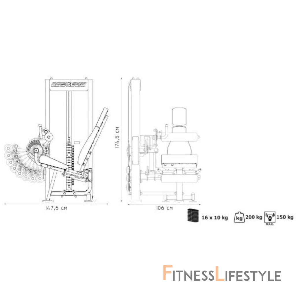 Predkopávanie a zakopávanie MARBO MP-U216 je nekompromisné, profesionálne vybavenie pre Vašu posilňovňu. Na výrobu boli zvolené oceľové profily 120x60x3mm a 80x40x3mm, ktoré zaručujú nečakanú trvanlivosť. Záťaž tvorí 16ks 10kg tehál. Celková váha závažia dodávaná so strojom je teda 160kg. Stroj disponuje širokou variabilitou nastavenia. Hlavné rameno je polohovateľné v 12-tich stupňoch, spodný valec v 8-mi stupňoch, horný valec v 5-tich stupňoch a operadlo má 4 polohy. Operadlo je navyše podoprené plynovým piestom, takže pre zmenu polohy stačí stlačiť páku a posunúť sa. Napínanie laniek sa vykonáva reguláciou 4 skrutiek na hlavnom vodiacom kolese. Odpadá tak zložité rozoberanie stroja. Polstrovanie je zo syntetickej kože zošitej režnou niťou značky COATS vyplnené tvrdou penou, to celé je na 3mm hrubej, oceľovej doske. Tichý chod zaisťuje zakrytovanie čiernym plastom, z prednej časti je kryt opatrený priehľadom pre ľahké nastavenie požadovaného počtu tehál. Stroj je navyše vybavený veľkou samolepkou, ktorá inštruuje cvičencov, aké cviky idú na stroji vykonávať a ktoré skupiny svalov daný cvik posilňuje.