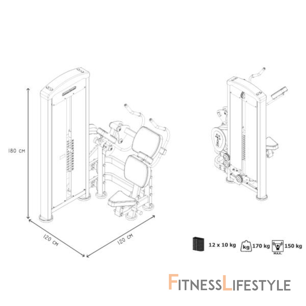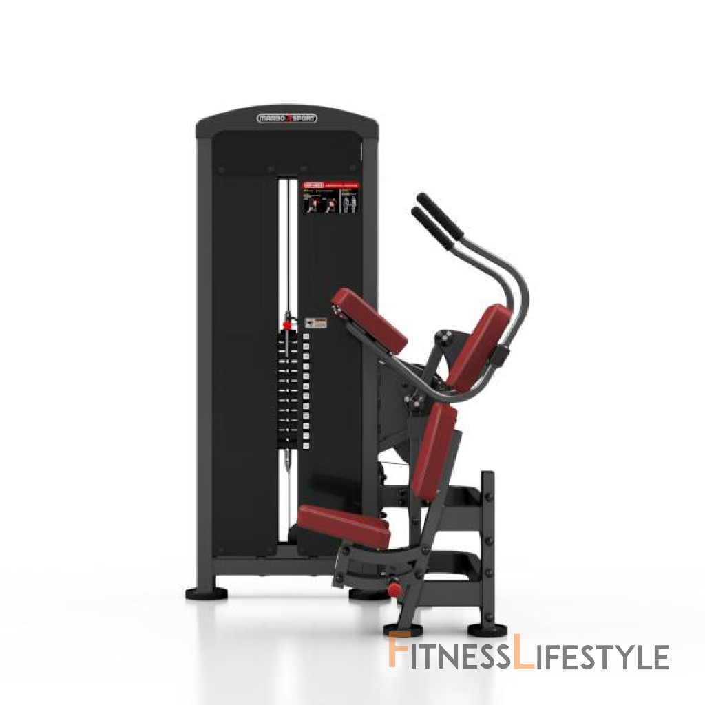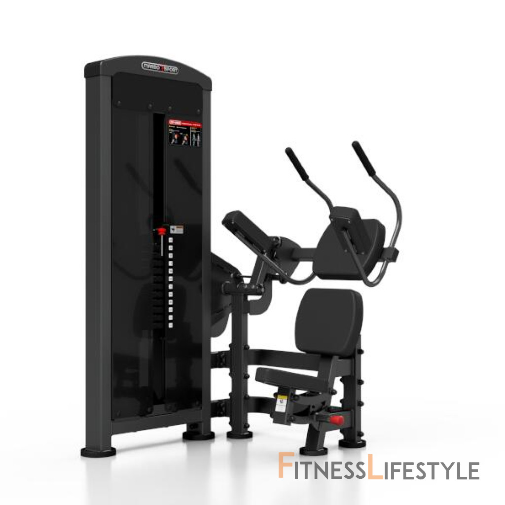 Stroj na posilnenie brušných svalov MARBO MP-U223 je nekompromisné, profesionálne vybavenie pre Vašu posilňovňu. Na výrobu boli zvolené oceľové profily 120x60x3mm a 80x40x3mm, ktoré zaručujú nečakanú trvanlivosť. Záťaž tvorí 12ks 10kg tehál. Celková váha závažia dodávaná so strojom je teda 120kg a je možné ju rozšíriť až na 160kg. Regulácia výšky sedadla je nastaviteľná v štyroch úrovniach za použitia červeného, pneumatického istiaceho kolíka. Napínanie laniek sa vykonáva reguláciou 4 skrutiek na hlavnom vodiacom kolese. Odpadá tak zložité rozoberanie stroja. Polstrovanie je zo syntetickej kože zošitej režnou niťou značky COATS vyplnené tvrdou penou, to celé je na 3mm hrubej, oceľovej doske. Tichý chod zaisťuje zakrytovanie čiernym plastom, z prednej časti je kryt opatrený priehľadom pre ľahké nastavenie požadovaného počtu tehál. Stroj je navyše vybavený veľkou samolepkou, ktorá inštruuje cvičencov, aké cviky idú na stroji vykonávať a ktoré skupiny svalov daný cvik posilňuje.