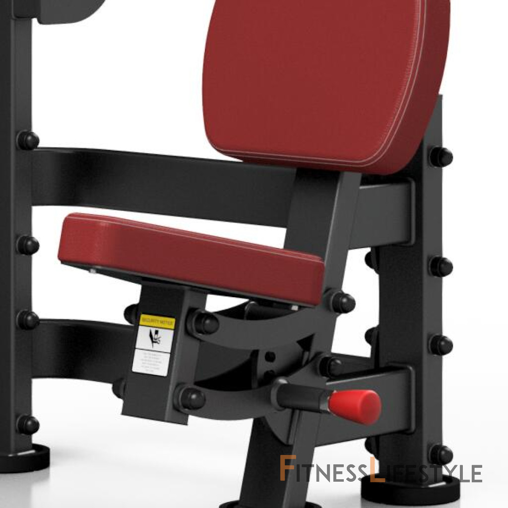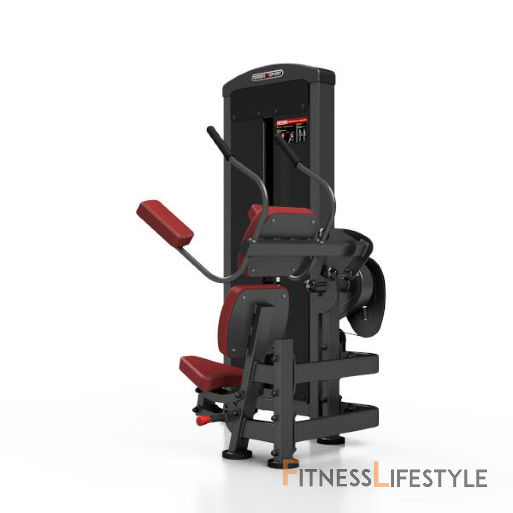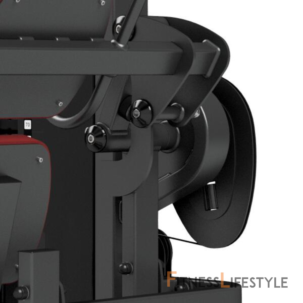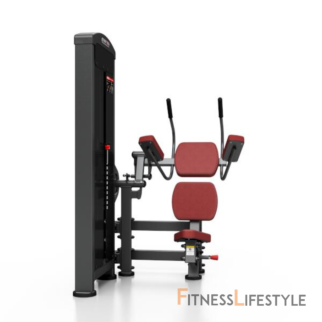 Stroj na posilnenie brušných svalov MARBO MP-U223 je nekompromisné, profesionálne vybavenie pre Vašu posilňovňu. Na výrobu boli zvolené oceľové profily 120x60x3mm a 80x40x3mm, ktoré zaručujú nečakanú trvanlivosť. Záťaž tvorí 12ks 10kg tehál. Celková váha závažia dodávaná so strojom je teda 120kg a je možné ju rozšíriť až na 160kg. Regulácia výšky sedadla je nastaviteľná v štyroch úrovniach za použitia červeného, pneumatického istiaceho kolíka. Napínanie laniek sa vykonáva reguláciou 4 skrutiek na hlavnom vodiacom kolese. Odpadá tak zložité rozoberanie stroja. Polstrovanie je zo syntetickej kože zošitej režnou niťou značky COATS vyplnené tvrdou penou, to celé je na 3mm hrubej, oceľovej doske. Tichý chod zaisťuje zakrytovanie čiernym plastom, z prednej časti je kryt opatrený priehľadom pre ľahké nastavenie požadovaného počtu tehál. Stroj je navyše vybavený veľkou samolepkou, ktorá inštruuje cvičencov, aké cviky idú na stroji vykonávať a ktoré skupiny svalov daný cvik posilňuje.
