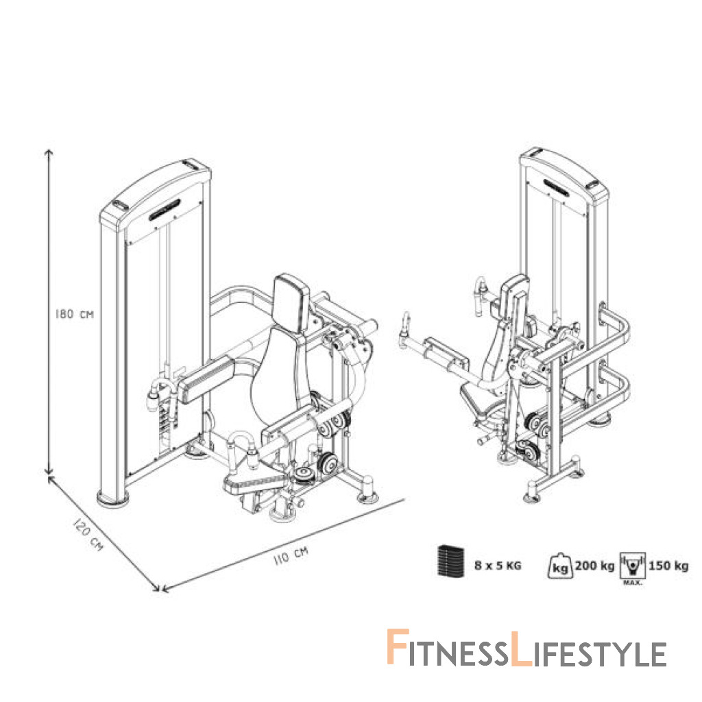 Stroj na posilnenie deltových svalov MARBO MP-U228 je nekompromisné, profesionálne vybavenie pre Vašu posilňovňu. Na výrobu boli zvolené oceľové profily 120x60x3mm a 80x40x3mm, ktoré zaručujú nečakanú trvanlivosť. Záťaž tvorí 8ks 5kg tehál. Celková váha závažia dodávaná so strojom je teda 40kg s možnosťou rozšírenia až do 160kg. Ramená majú na sebe nezávislý chod. To zaručuje vysokú efektivitu tréningu. Všetky nastavenia sa vykonávajú červenými, pružinovými kolíkmi. Sedadlo má štyri polohy. Polstrovanie je zo syntetickej kože zošitej režnou niťou značky COATS vyplnené tvrdou penou, to celé je na 3mm hrubej, oceľovej doske. Tichý chod zaisťuje zakrytovanie čiernym plastom, z prednej časti je kryt opatrený priehľadom pre ľahké nastavenie požadovaného počtu tehál. Stroj je navyše vybavený veľkou samolepkou, ktorá inštruuje cvičencov, aké cviky idú na stroji vykonávať a ktoré skupiny svalov daný cvik posilňuje.
