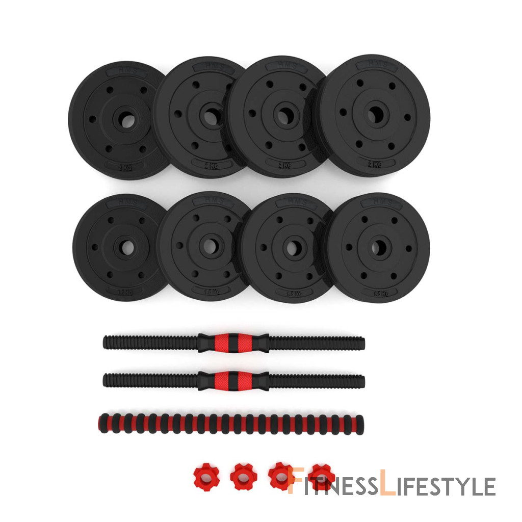 Kompletná nakladacia sada dvoch jednoručných a jednej obojručnej činky s celkovou hmotnosťou 15 kilogramov, to je HMS SGP15. Nakladacie činky patria ku klasickému vybaveniu každej domácej posilňovne.
