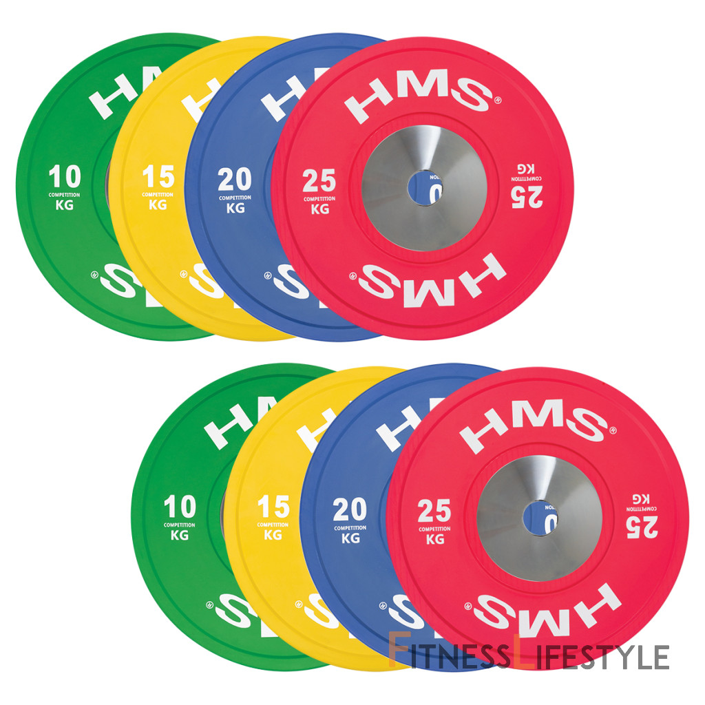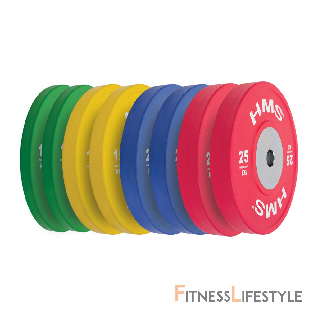 Set oympíjskych kotúčov HMS vhodný pre závody vo vzpieračstve a pri funkčnom tréningu. Tento set je sfarbený presne podľa závodných noriem. Jeho hlavným parametrom je odolnosť, kedy aj po odhode z veľkej výšky, zostane kotúč aj podložie bez známky poškodenia. Kotúč je určený pre olympijské osi s priemerom tŕňov 50 mm.