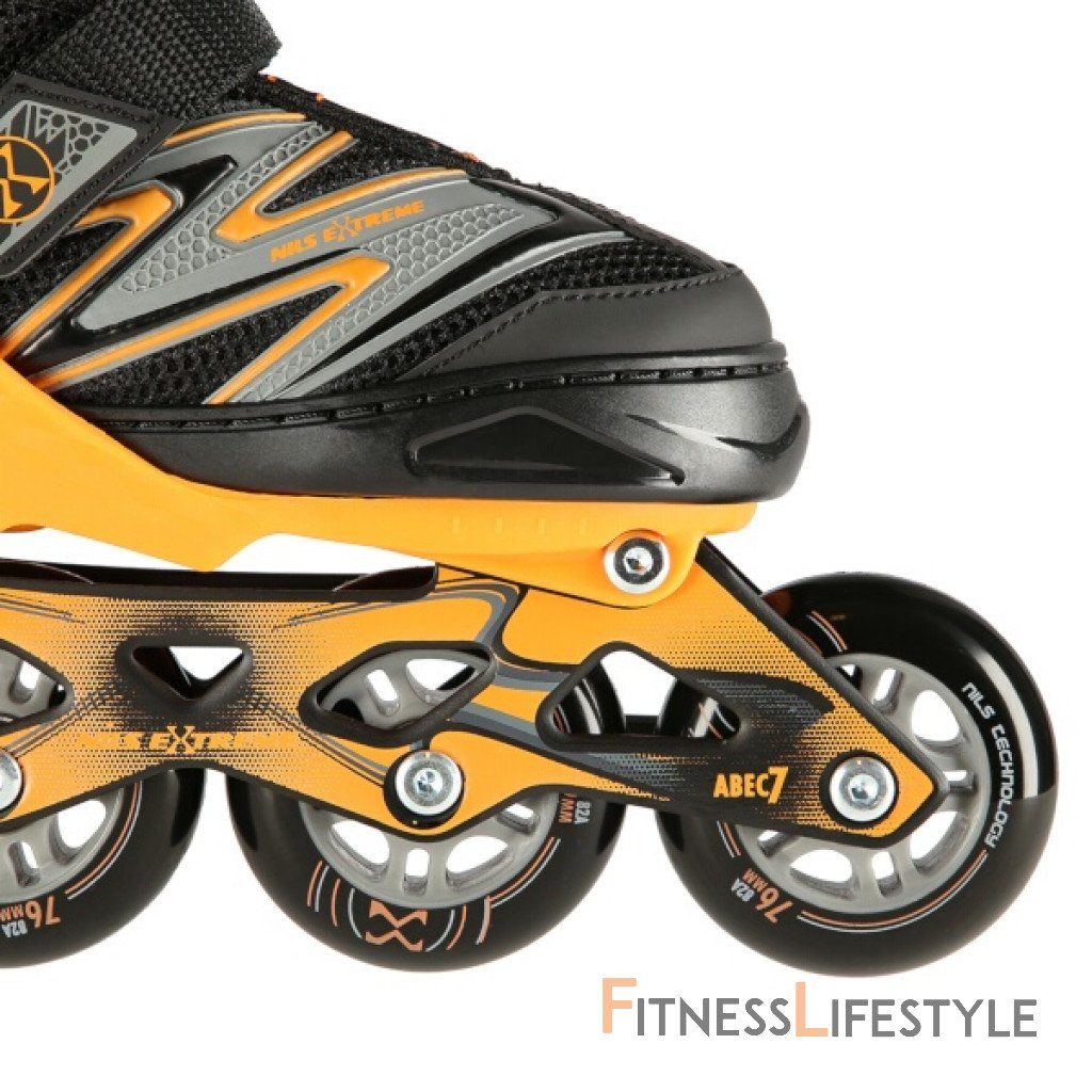 Kolieskové korčule NILS Extreme NA11010 sú určené na rekreačnú jazdu začínajúcich a mierne pokročilých korčuliarov po rovných a hladkých chodníkoch, ako napríklad po asfalte. Ľahká a odolná topánka zaisťuje bezpečnosť pri jazde. Systém ventilácie a tvarovaná stielka topánky priamo ovplyvňujú zvýšenie užívateľského komfortu. Ide o model s nastaviteľnou veľkosťou, kedy každá korčule má na výber zo 4 rozmerov. Pomocou stlačenia tlačidla a posunutia špičky je možné ľahko a rýchlo nastaviť veľkosť topánky na nohe používateľa. Kolieska s tvrdosťou 82A sú uložené v hliníkovej lište, dobre priliehajú k podkladu a čiastočne pohlcujú nervnosti. Model NA11010 je osadený ložiskami ABEC 7, ktoré sa vyznačujú precíznym spracovaním a nízkym odporom, kedy jazda má dobrú zotrvačnosť a na korčuliach tak možno uraziť dlhú vzdialenosť bez vynaloženia zbytočnej sily.