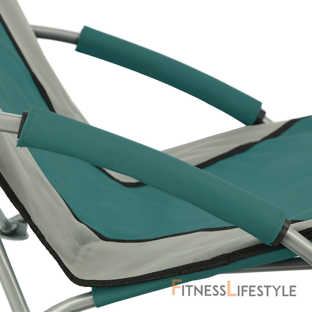 lakťové opierky sú vybavené penovým rukávom pre maximálne pohodlie počas leňažnosti. Pre ľahké prenášanie môže byť stolička zložená a zabalená do dodanej tašky.