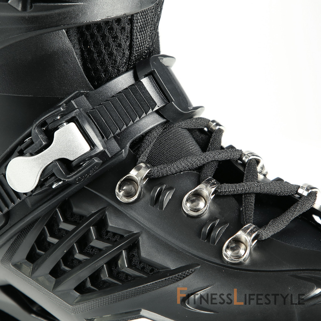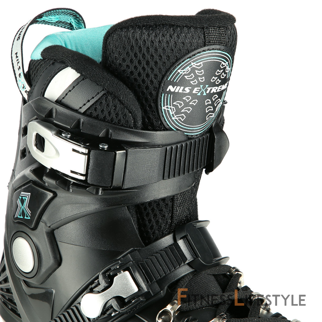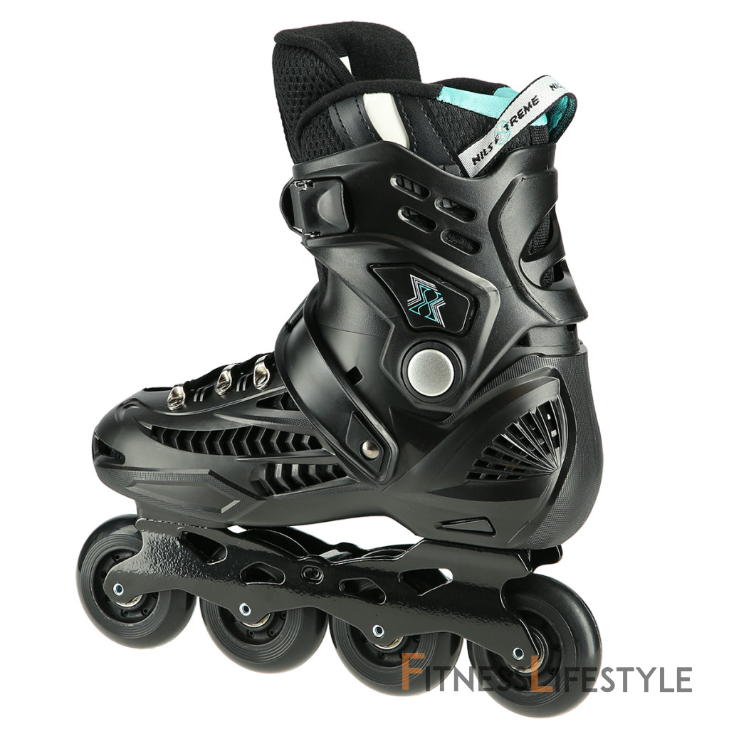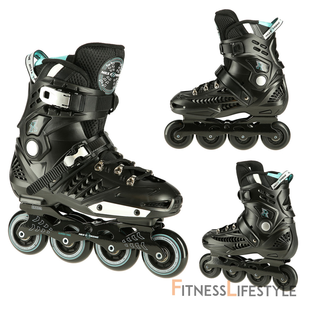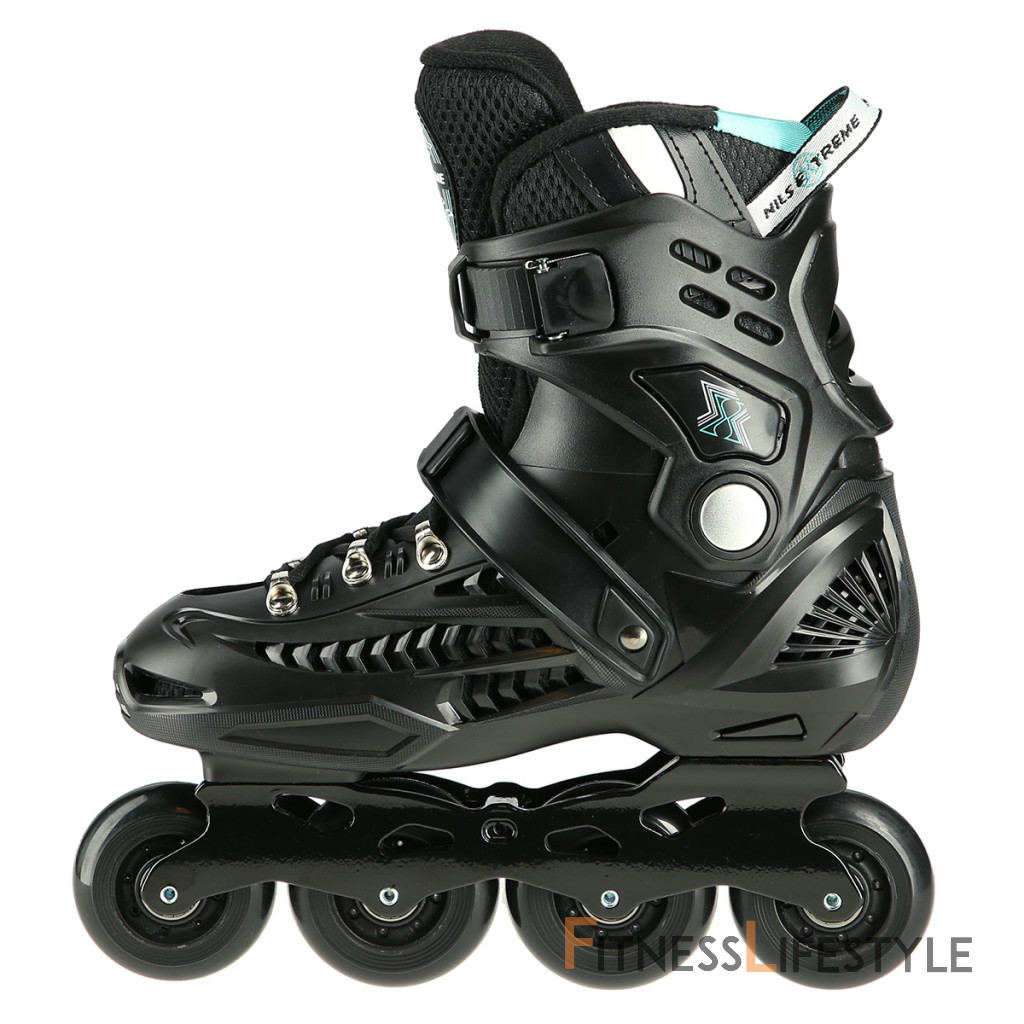 Kolieskové korčule NILS Extreme NA20001 sú určené primárne pre freeride a slalom. Ich konštrukcia je založená na ľahkej, vetranej topánke s anatomickou stielkou zaručujúcou vysokú stabilitu päty, polypropylénovom skelete a hliníkovej lište vyrobenej pomocou vstrekovania. Ako zapínanie bolo použité šnurovanie, dvojsekčné pracky a kvalitné spony s napínacím mechanizmom. Na vonkajšej strane topánky nájdeme slider, tak často používaný pri freeride.