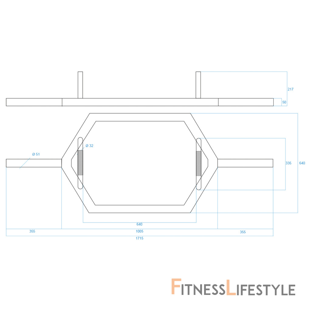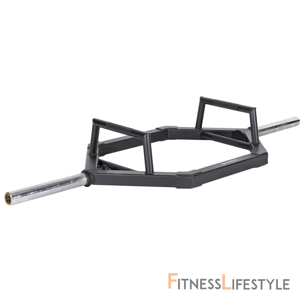 Olympijská os HEX GHX02 HMS so špeciálnym hexagonálnym tvarom. Os má vrúbkovanú rukoväť, vďaka ktorej už nemusíte mať strach, že Vám hriadeľ vykĺzne z ruky pri následných opakovaniach. Dizajn hriadeľa je založený na šesťuholníku, vďaka ktorému pri tréningu nedochádza k preťažovaniu chrbtice a kolien. Veľkou prednosťou je fakt, že cvičenec počas cvičenia funguje vo vnútri hriadeľa, čo má za následok minimalizovanie akéhokoľvek úrazu. Rám je vyrobený z rúrok s priemerom 40 mm a hrúbkou steny 2,5 mm. Maximálne zaťaženie až 450 kg. Hriadeľ je vhodný ako pre profesionálov, tak pre práve začínajúcich cvičencov.