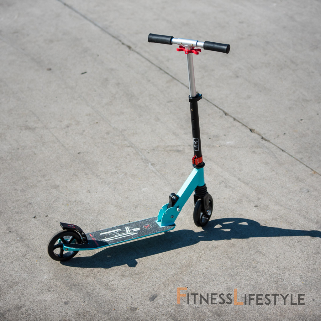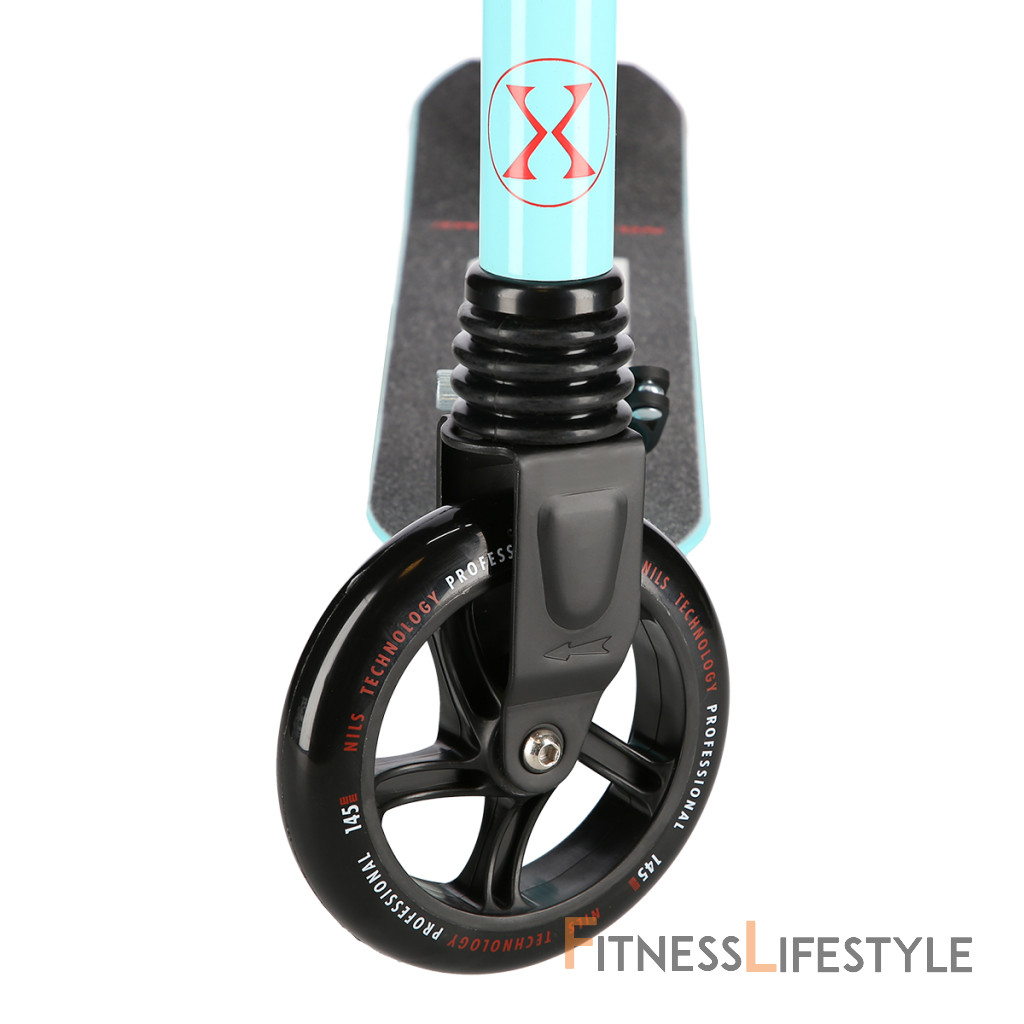 Systém odpruženia predného kolesa zvyšuje jazdný komfort. Tlmič pohlcuje nárazy a jazda po nerovnom asfalte, alebo dlažobných kockách je príjemnejšia a ťažšia. Zadný blatník slúži ako prítlačná brzda. Riadidlá sú opatrené gumovými rukoväťami, ktoré zaisťujú pevný a pohodlný úchop. Kolesá sú osadené ložiskami ABEC 7 a polyuretánovou pneumatikou s priemerom 145 milimetrov. Táto kombinácia zaisťuje rýchlu, plynulú a bezpečnú jazdu.