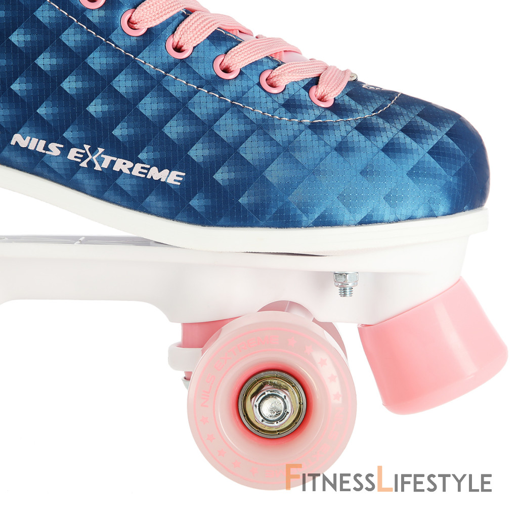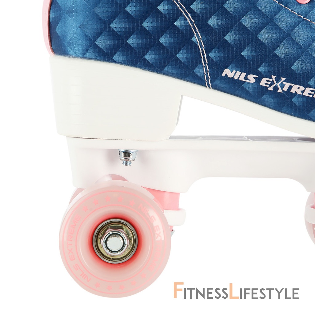 Kolieskové korčule NILS Extreme NQ14110 sú určené na rekreačnú jazdu po hladkom podklade, ktorý nájdeme napríklad v skateparku, alebo v hale. Quadovým korčuliam sa tiež hovorí krasokorčule alebo tanečné korčule, je to dané rozmiestnením koliesok, ktoré zaručuje vysokú stabilitu. Korčule sú vhodné aj pre úplne začiatočníkov.