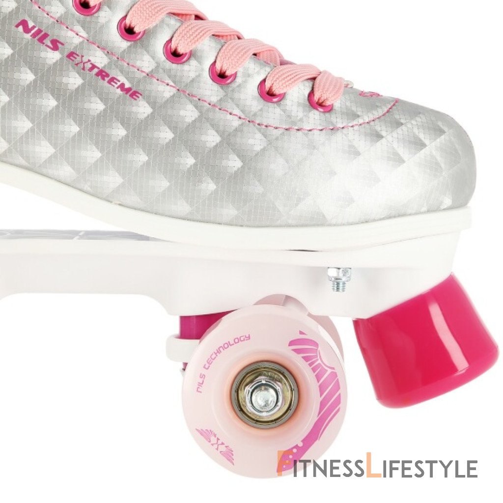 Kolieskové korčule NILS Extreme NQ14198 sú určené na rekreačnú jazdu po hladkom podklade, ktorý nájdeme napríklad v skateparku, alebo v hale. Quadovým korčuliam sa tiež hovorí krasokorčule alebo tanečné korčule, je to dané rozmiestnením koliesok, ktoré zaručuje vysokú stabilitu. Korčule sú vhodné aj pre úplne začiatočníkov.