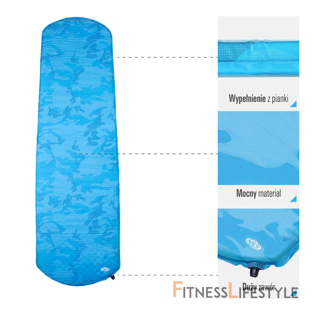 Samonafukovacia karimatka NILS CAMP NC4062 zaistí kvalitný spánok počas kempovania a dovoleniek pod stanom. Podložka je ale vhodná aj k vode a všade tam, kde si chcete príjemne poležať. Samonafúknutie zaisťuje vnútorný, penový materiál s otvorenými pórmi. Po povolení ventilu do seba nasáva vzduch a dostáva sa tak do pôvodného stavu. Záverom je ešte potrebné podložku dofúknuť na požadovanú tvrdosť. Skladanie sa vykonáva otvorením ventilu a zrolovaním od opačnej strany, než je ventil. Karimatku potom zaistíte remienkami a vložíte do dodávaného vaku. Na model NC4062 bol použitý veľmi odolný polyester 190T potiahnutý vrstvou PVC, táto kombinácia zaisťuje vysokú odolnosť a karimatka sa dá položiť aj na nerovný povrch.